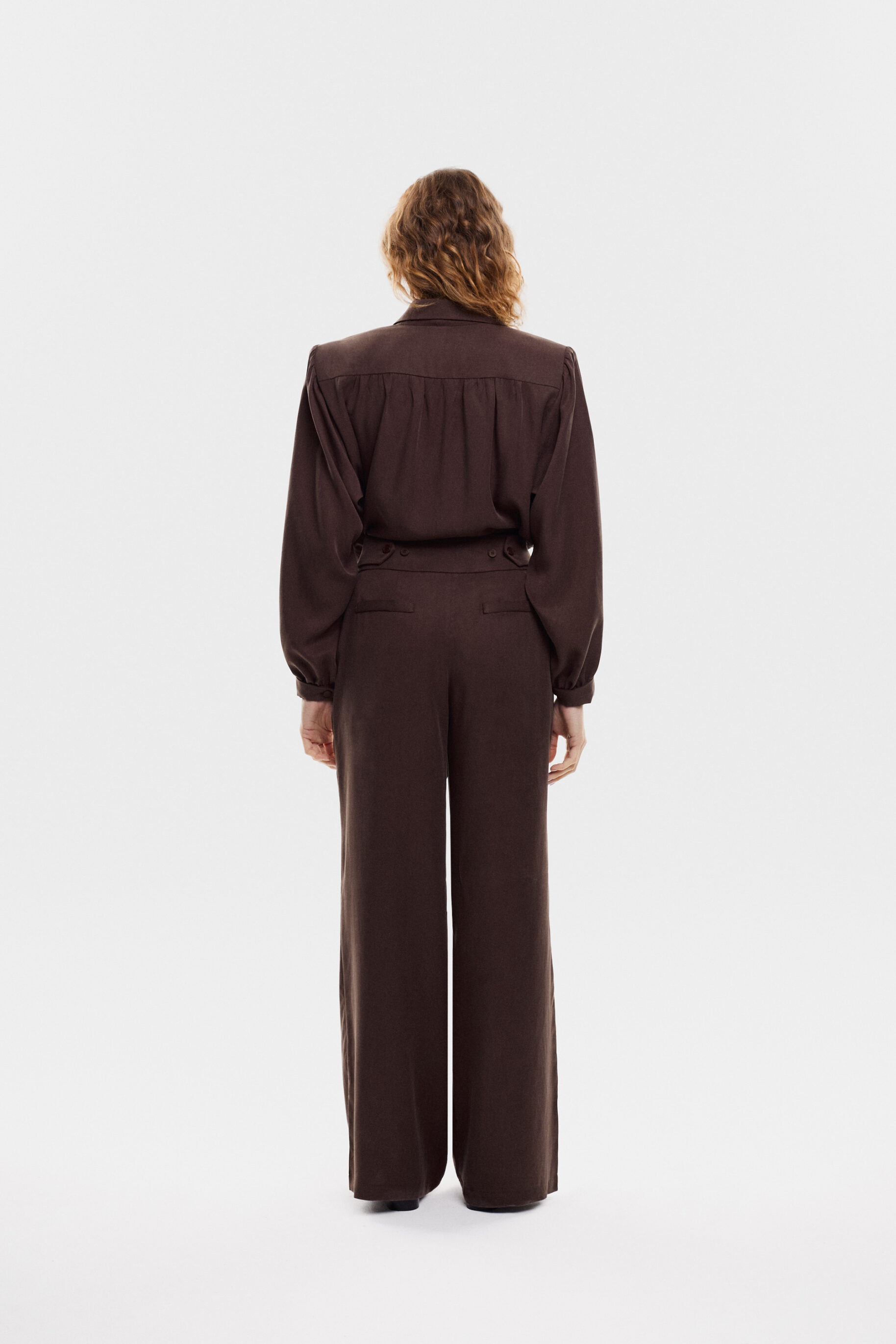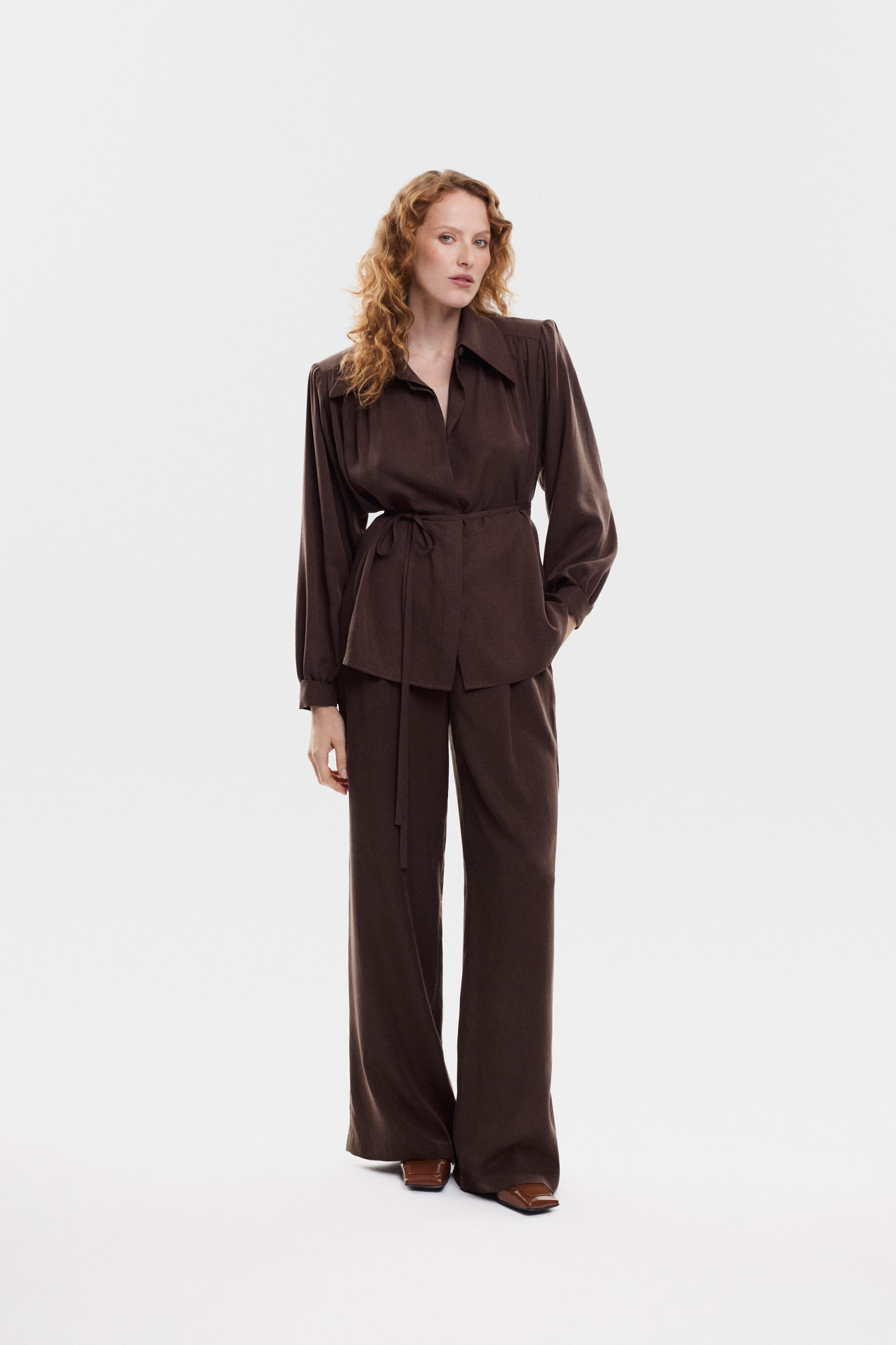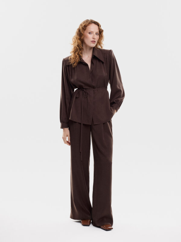 - Brązowe spodnie o lejącej, niesamowicie przyjemnej tkaninie