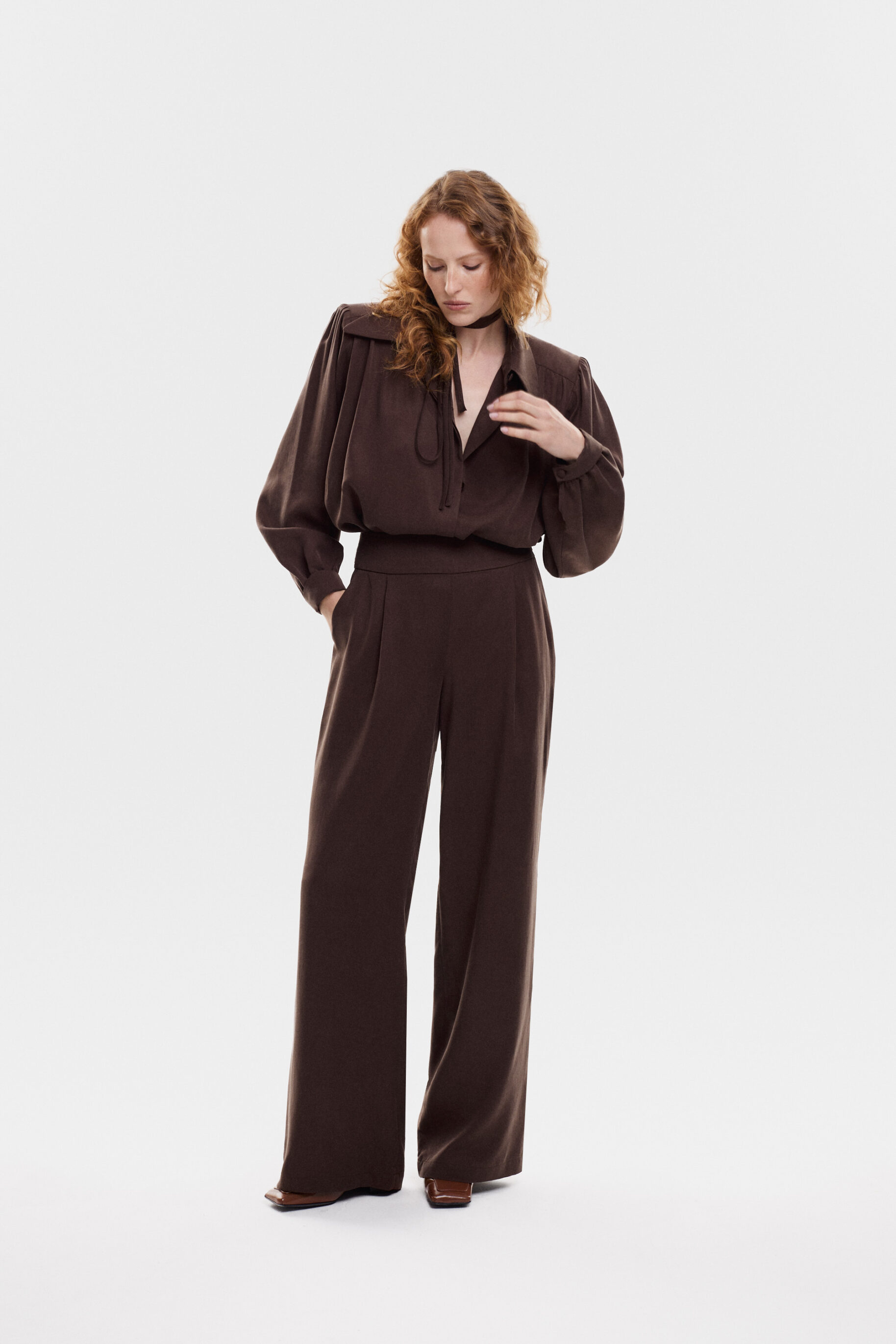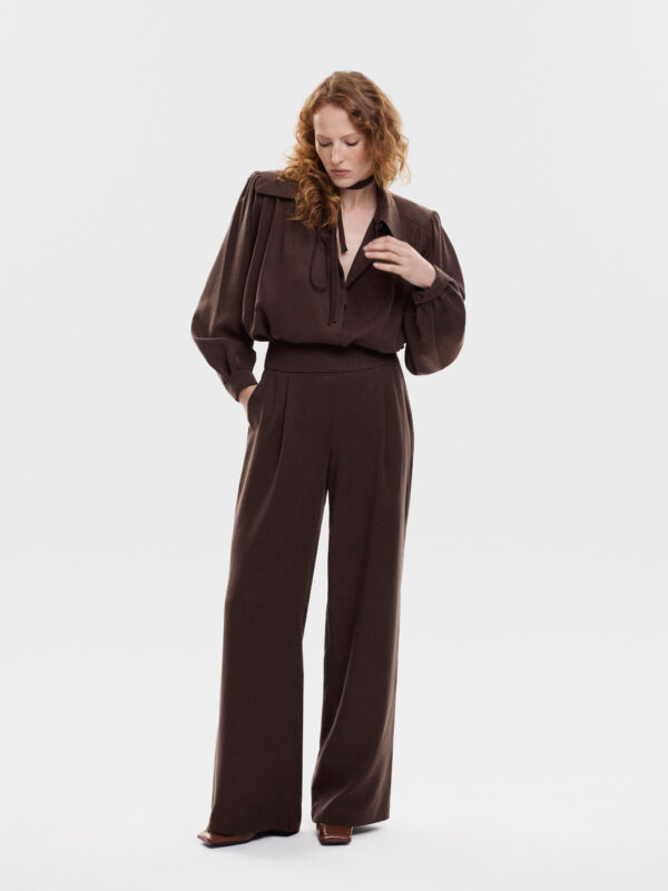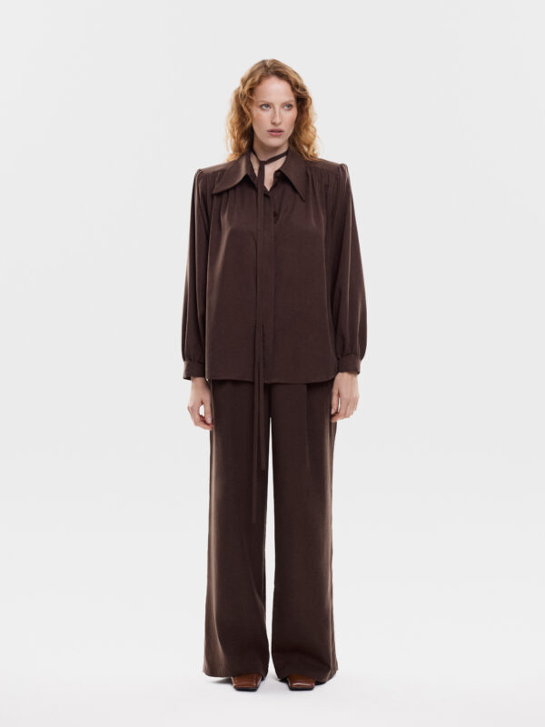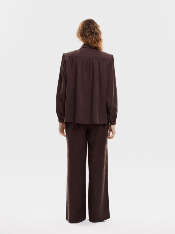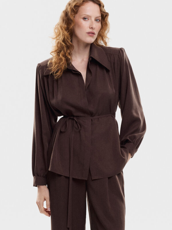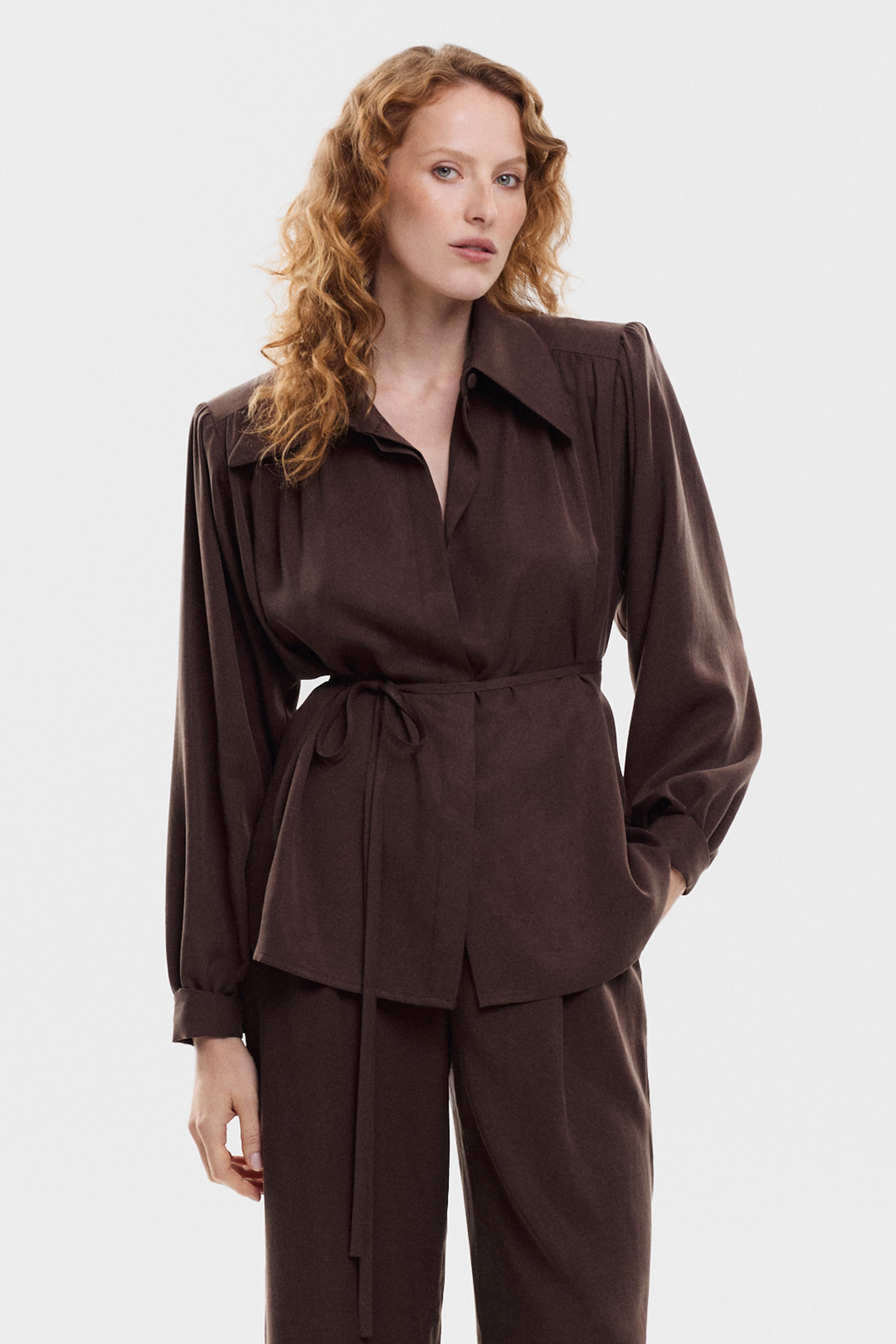 - Brązowa koszula o lejącej, niesamowicie przyjemnej tkaninie