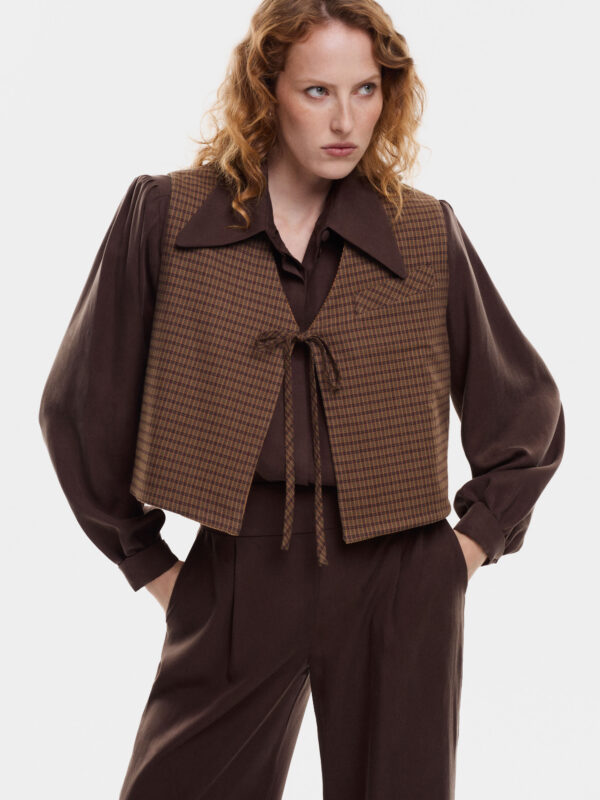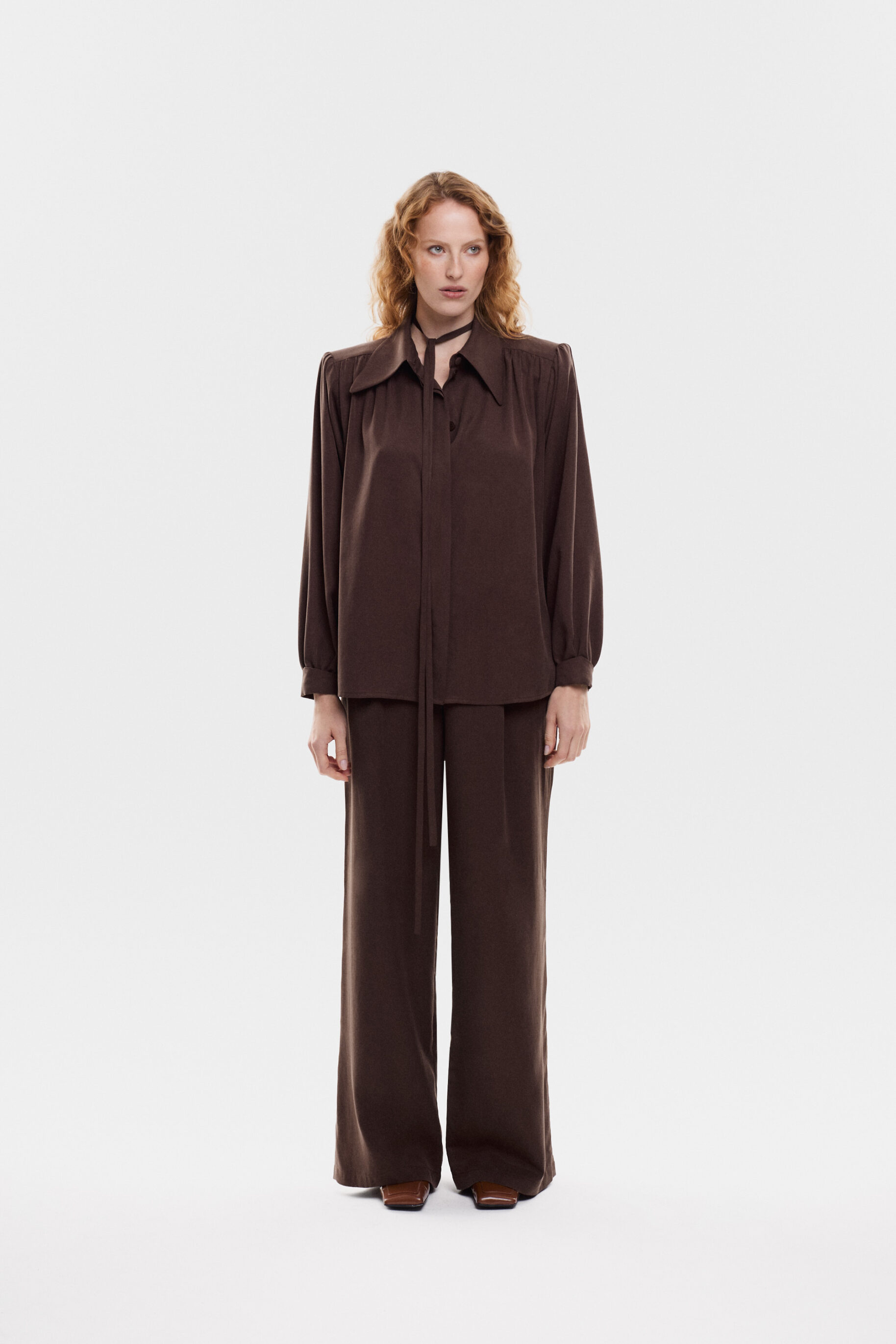 Koszula Chocolate swoją inspirację znalazła wśród modeli koszul z lat 60-tych. Została wykonana z lejącej tkaniny w najmodniejszym ale i ponadczasowym odcieniu brązu. Efektowne marszczenia na przodzie i tyle nadają koszuli szlachetnego charakteru. Polecamy nosić ją w zestawie ze spodniami lub spódnicą włożoną do środka. Wyciągnięta na wierzch pozwoli stworzyć luźny, nonszalancki look. Idealnie komponuje się z naszymi spodniami Chocolate, Denim jeans and the reversible 2in1 Vest..