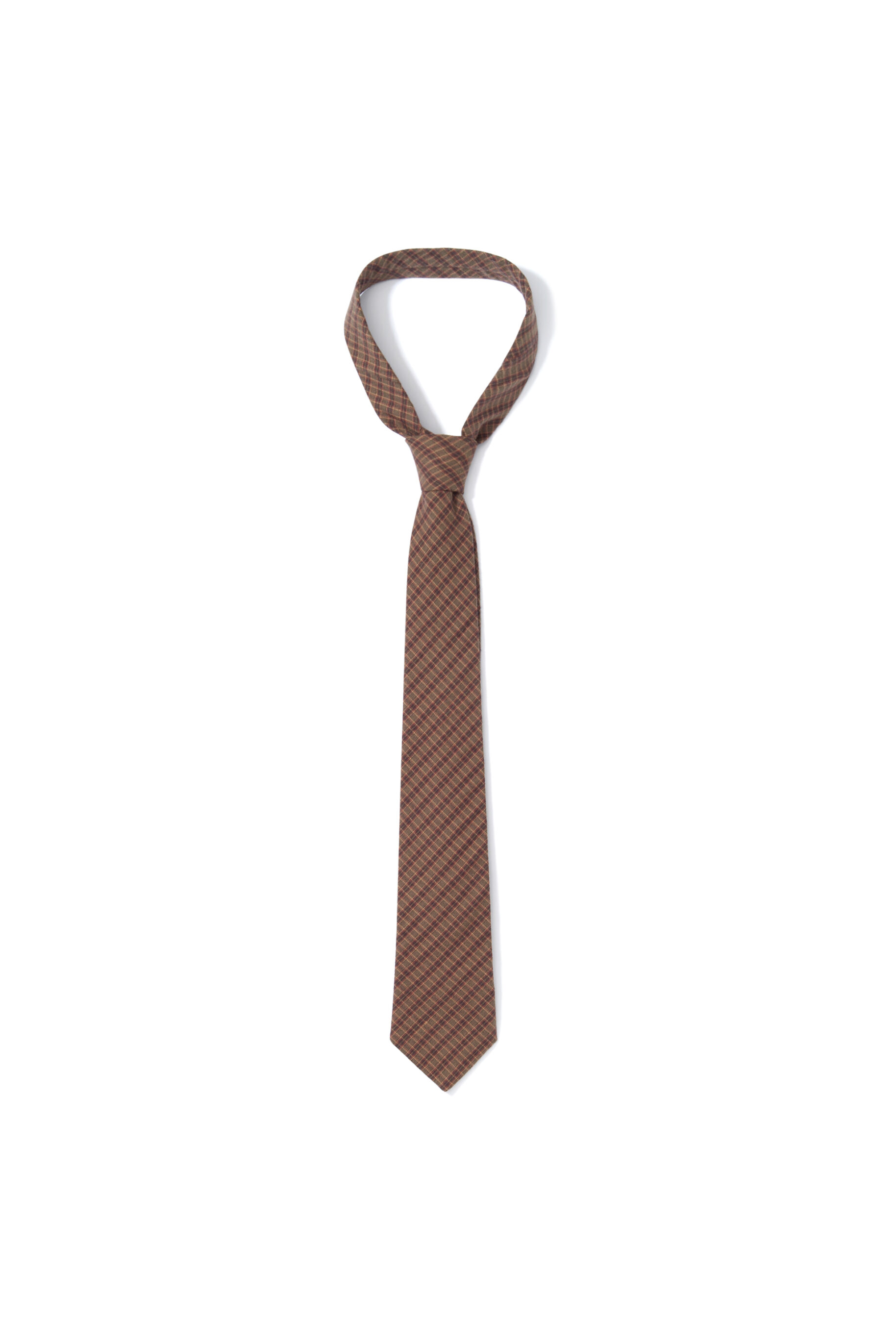 - Krawat w drobną kratę o brązowym kolorze