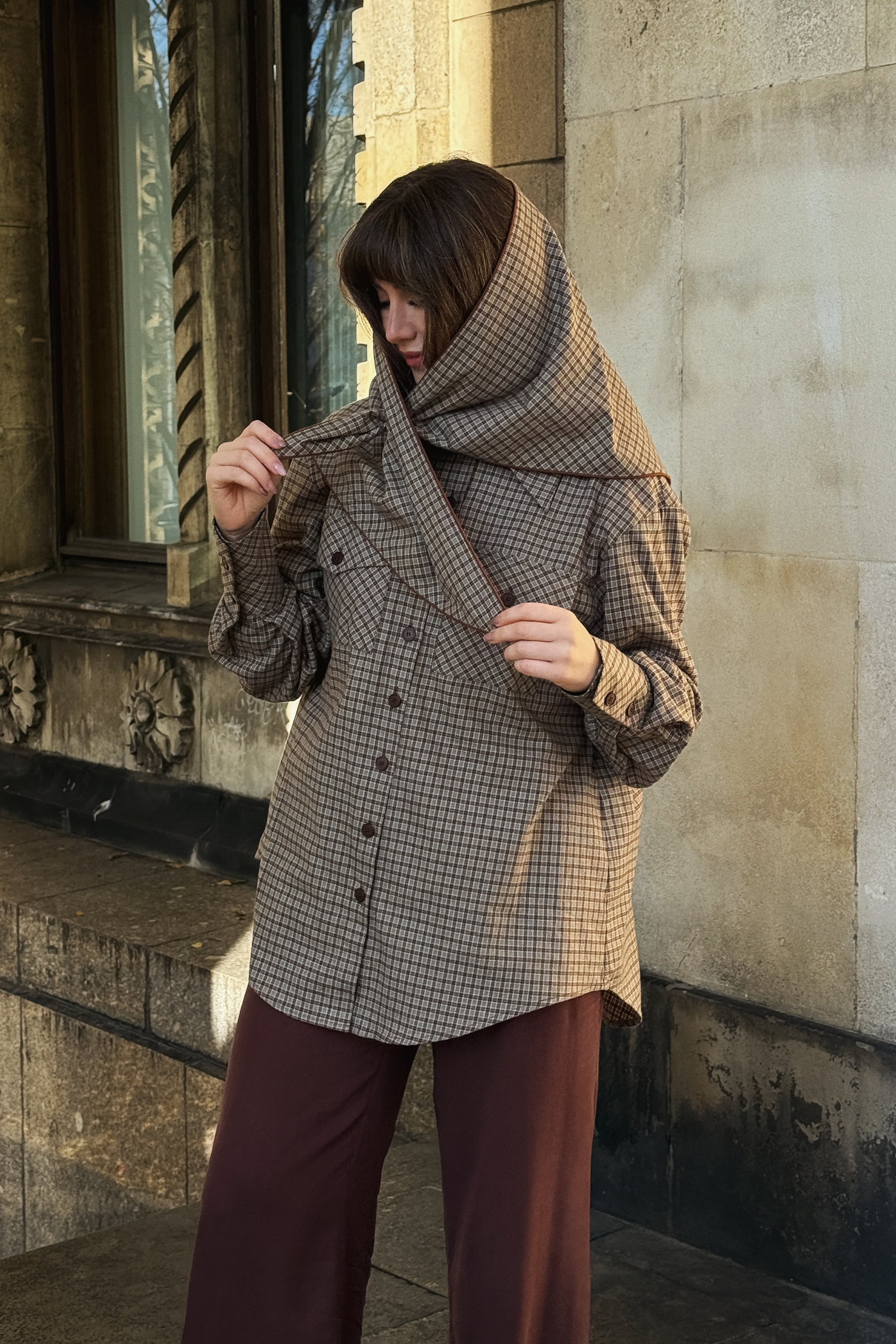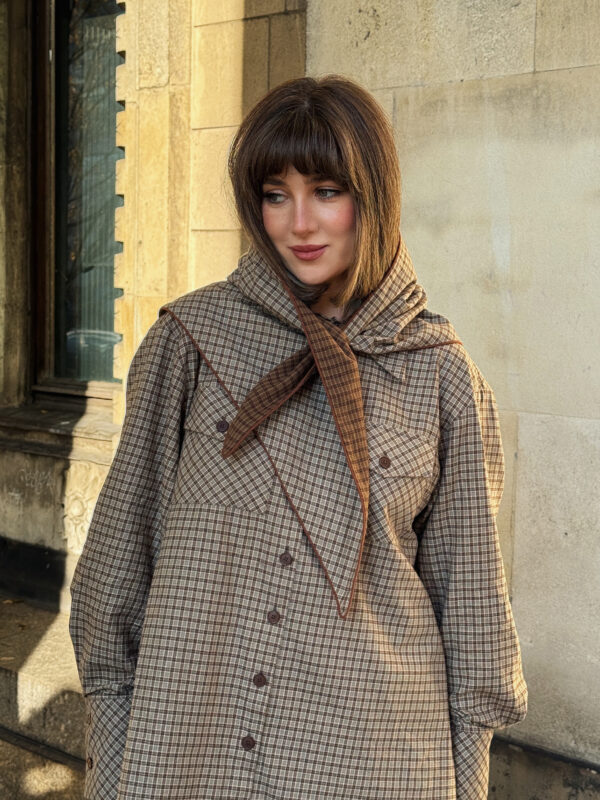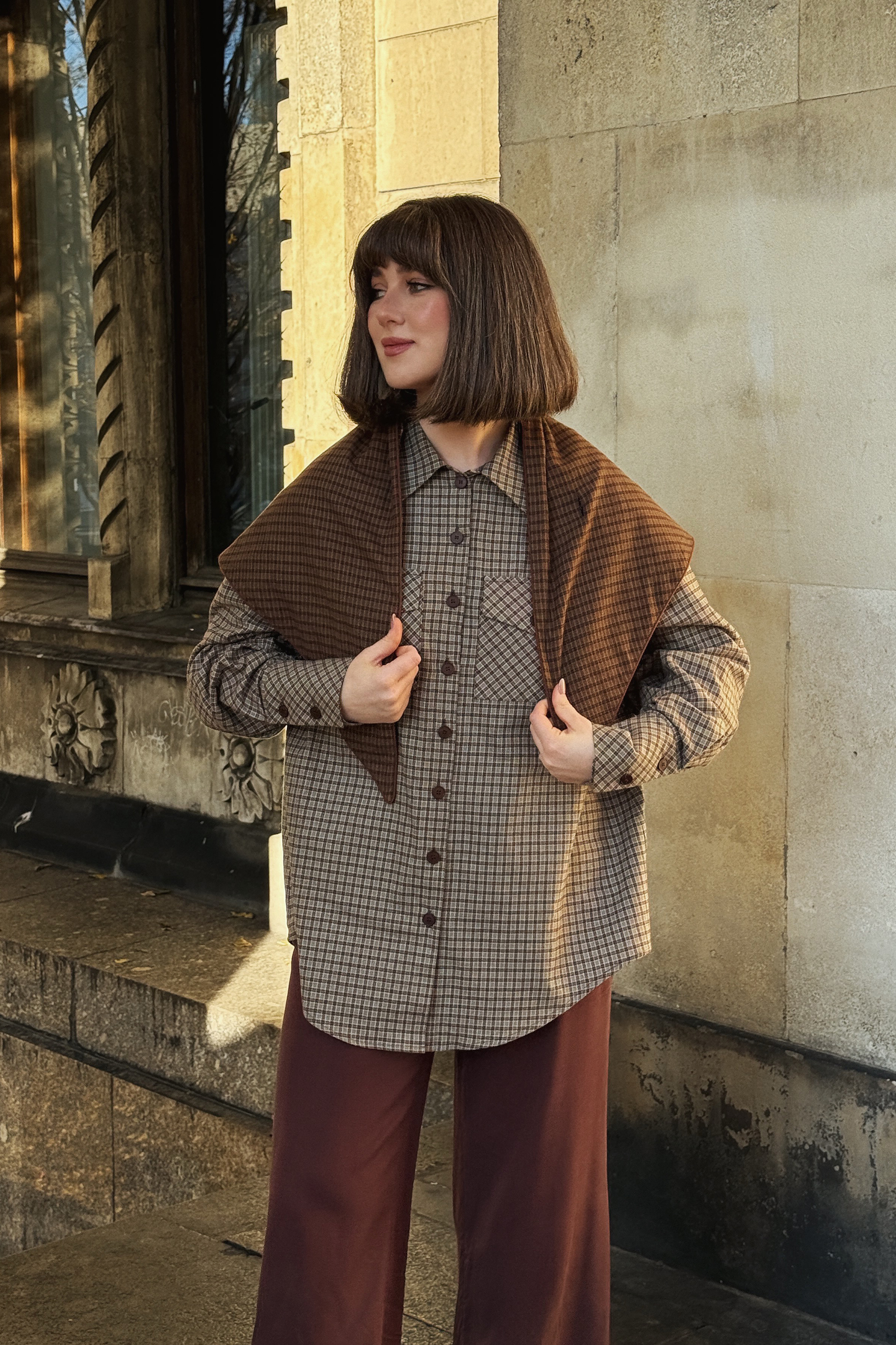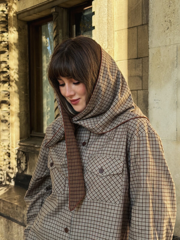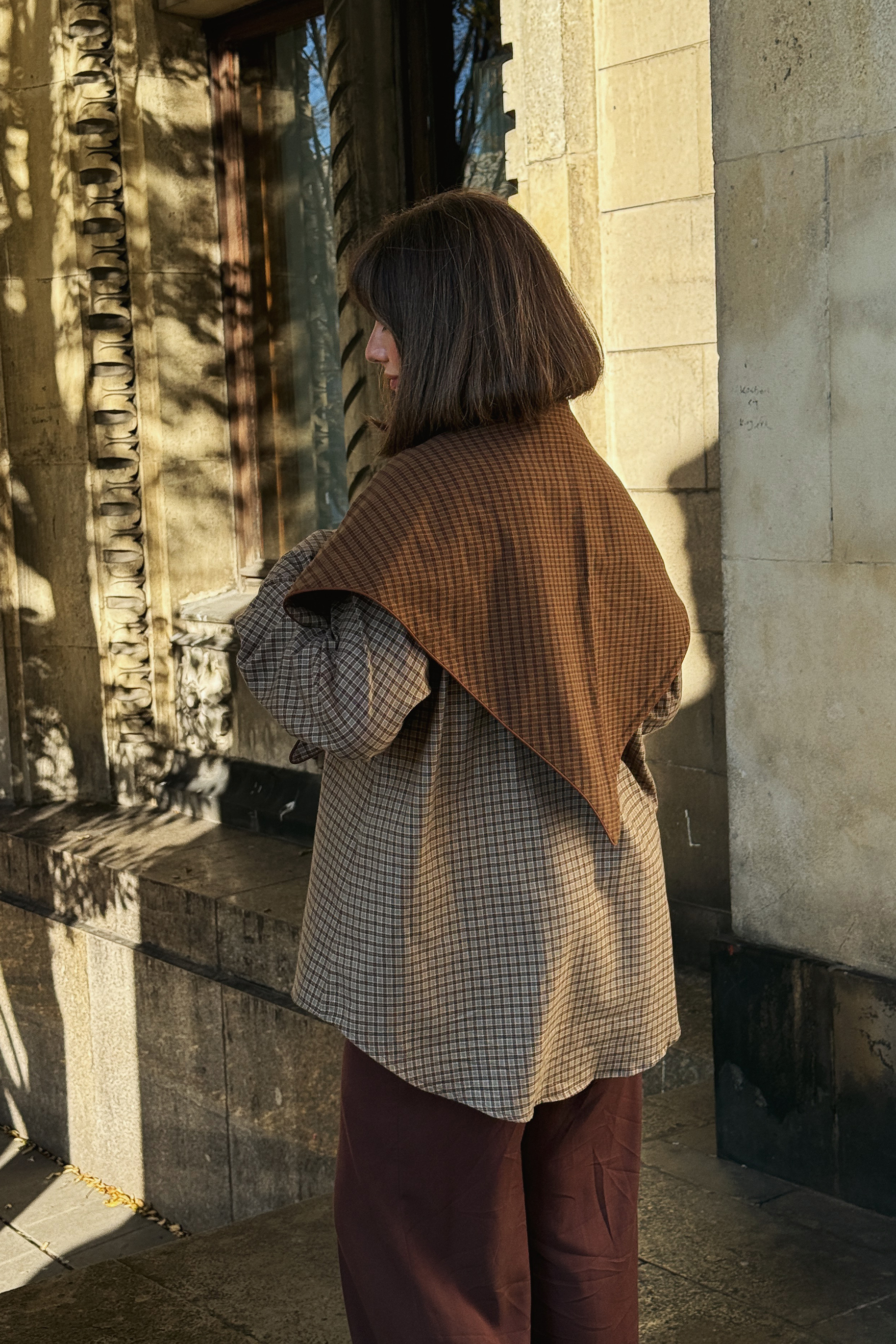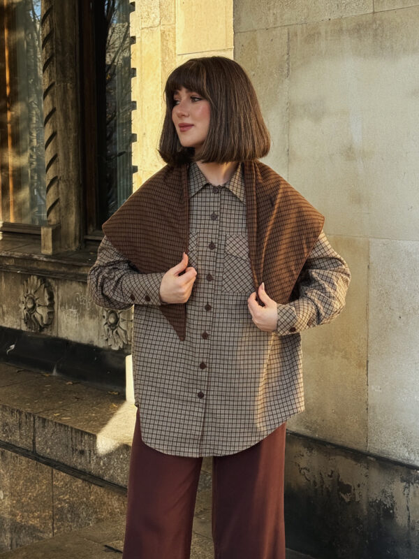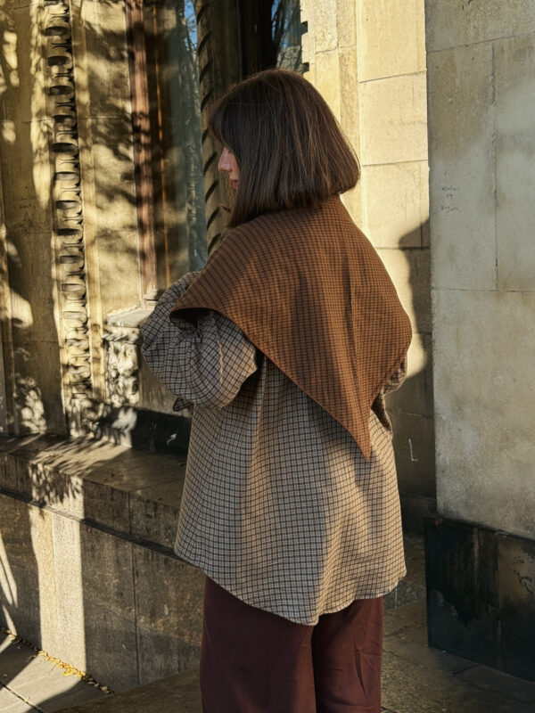 - Dwustronna apaszka 2in1 z łączonych tkanin w drobną kratę