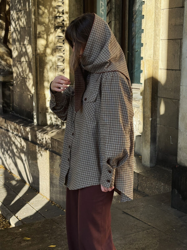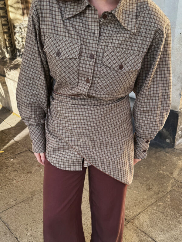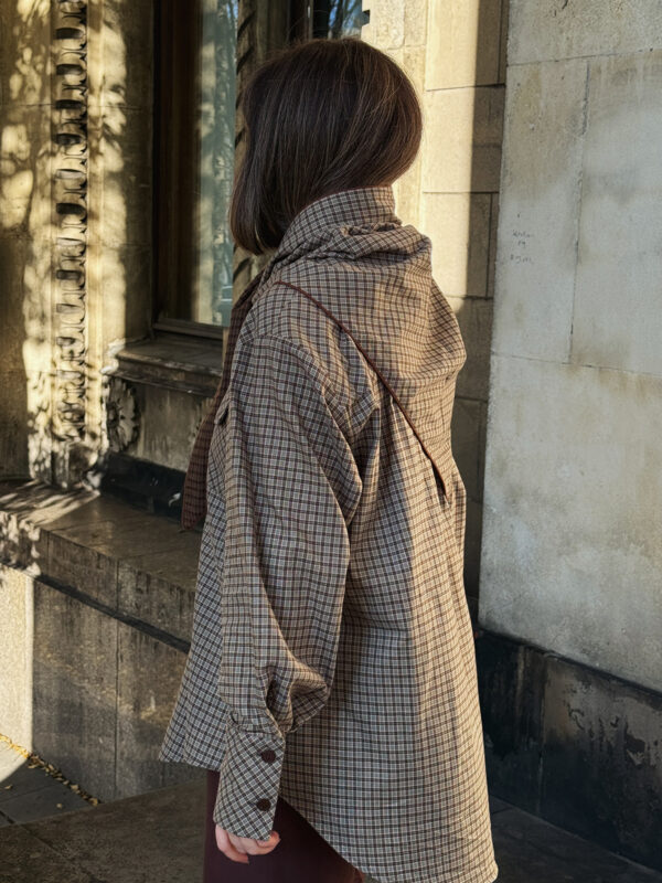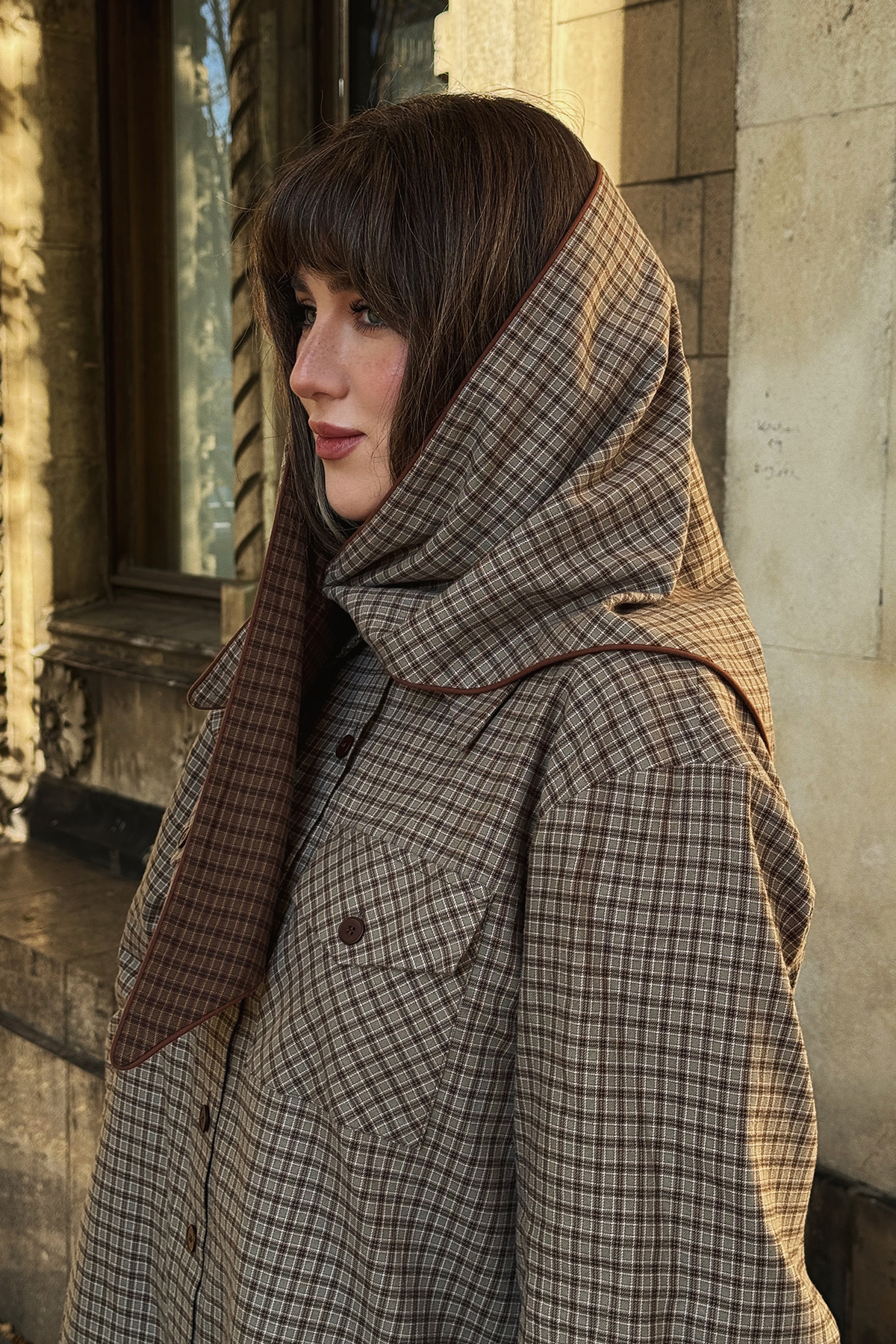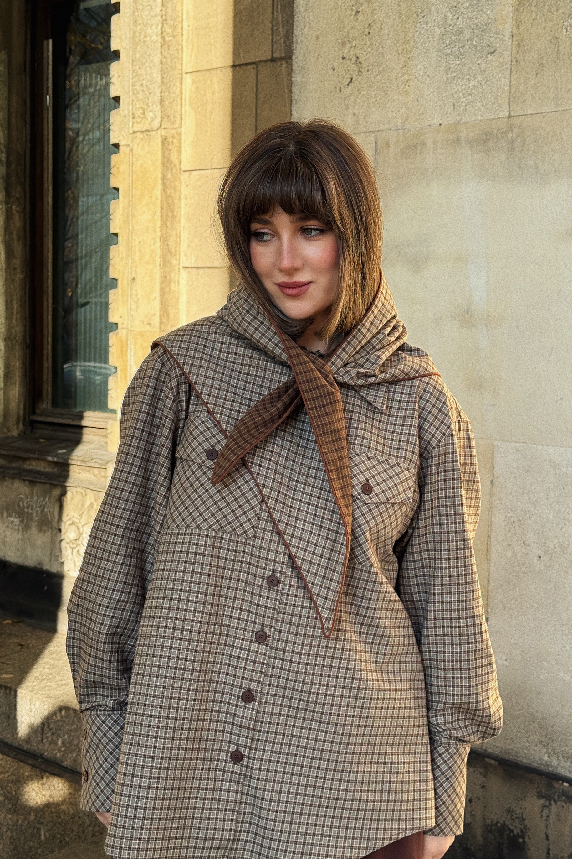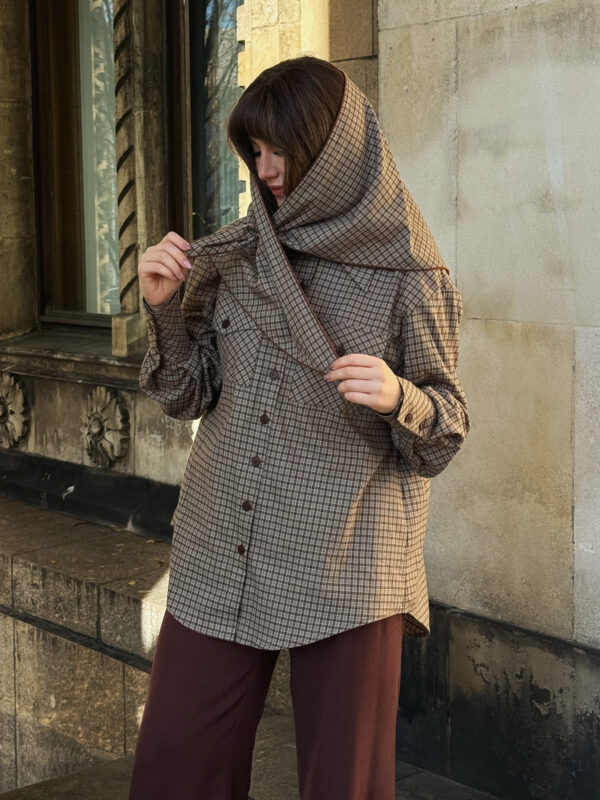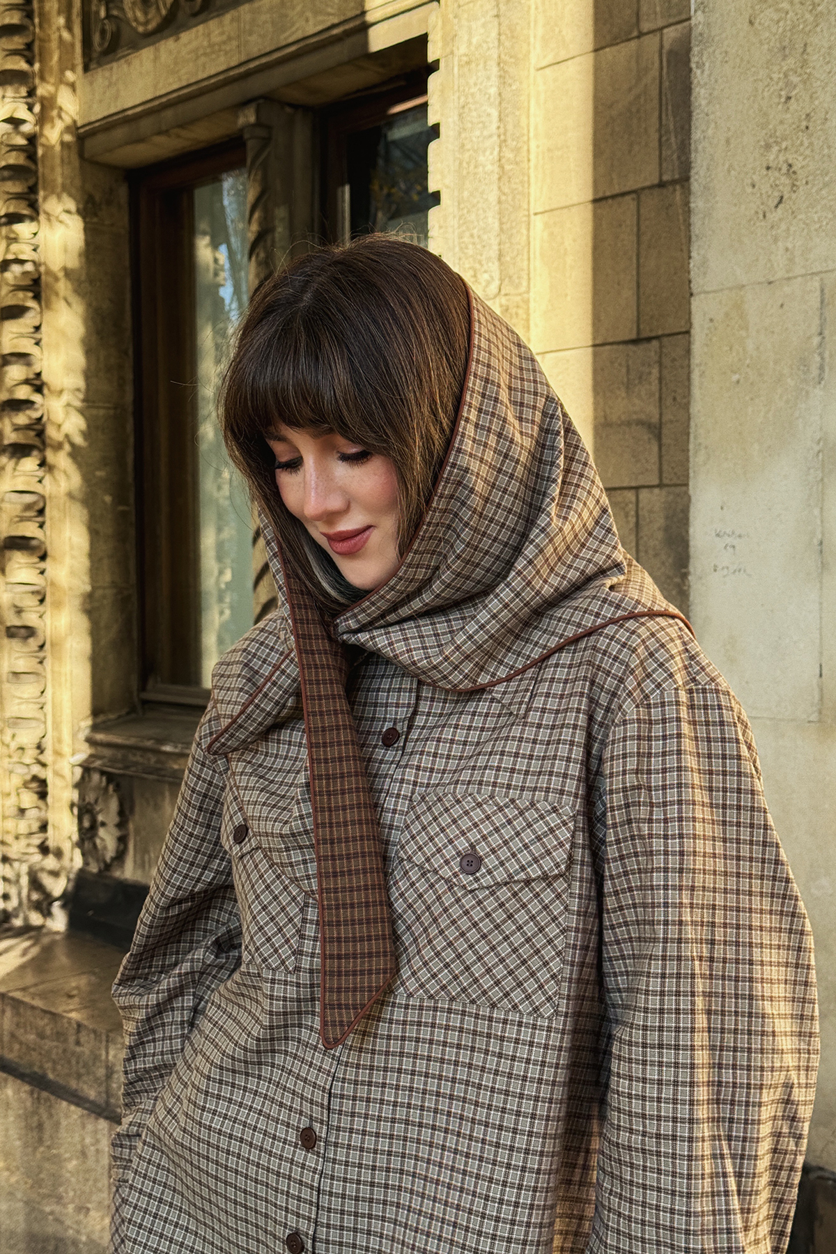 - Dwustronna apaszka 2in1 z łączonych tkanin w drobną kratę