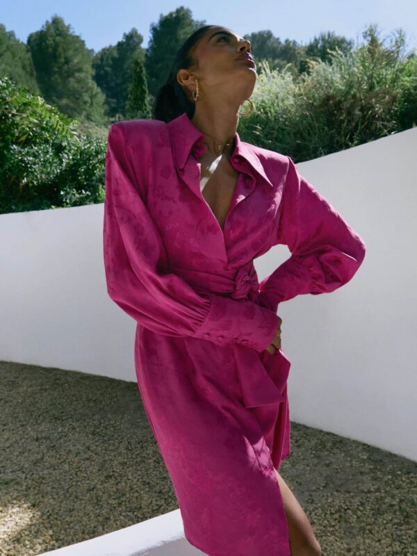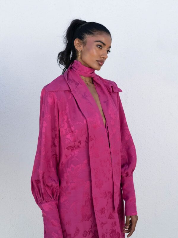 Jacquard fabric with a floral print. Composition: 100% viscose with OEKO-TEX & GOTS certificates. Sewn in Warsaw.