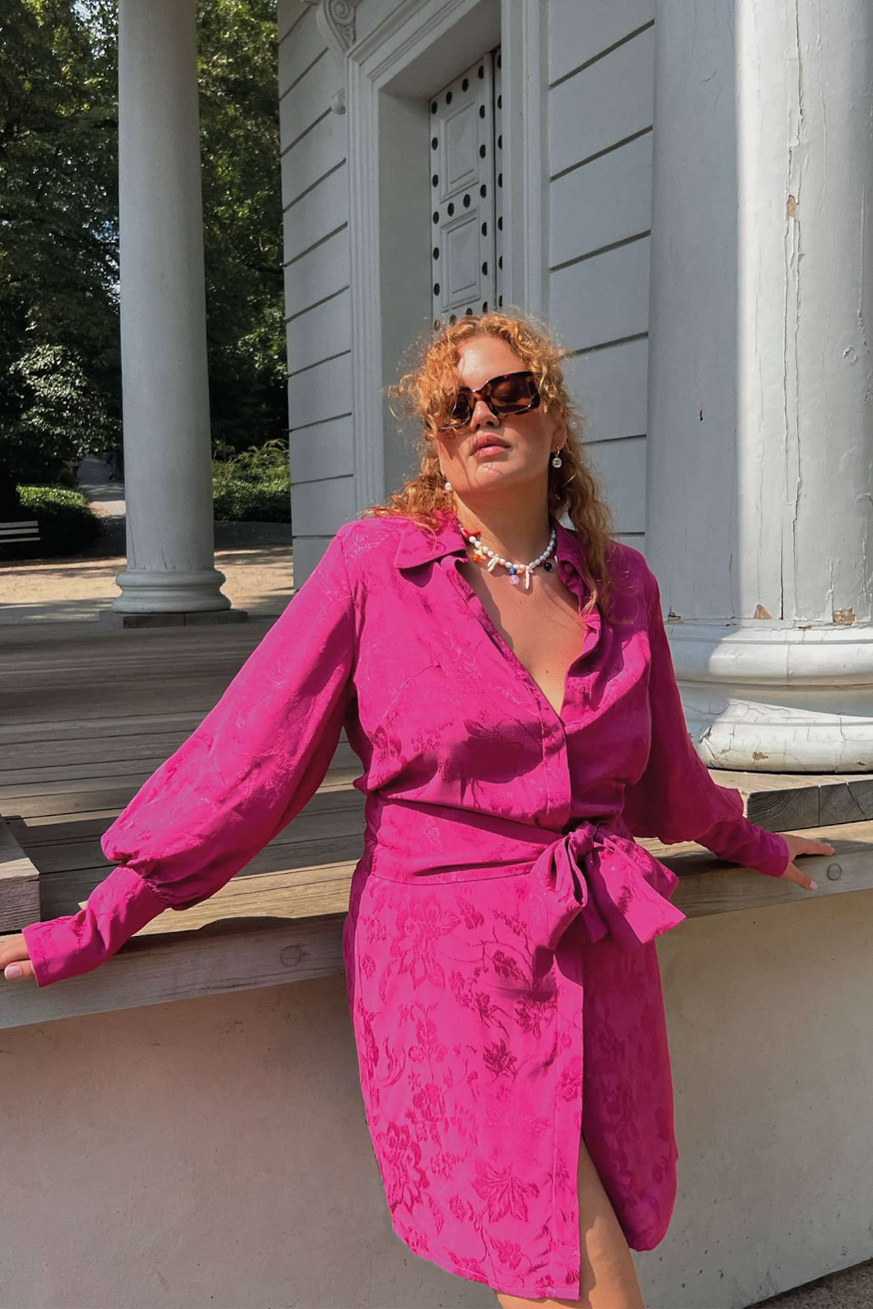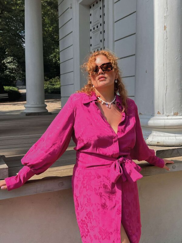 It is best to wash the dress by hand or in a washing machine on a delicate program. Turn inside out and wash it in max. 30 degrees. Then dry it on a hanger. Iron from the inside.