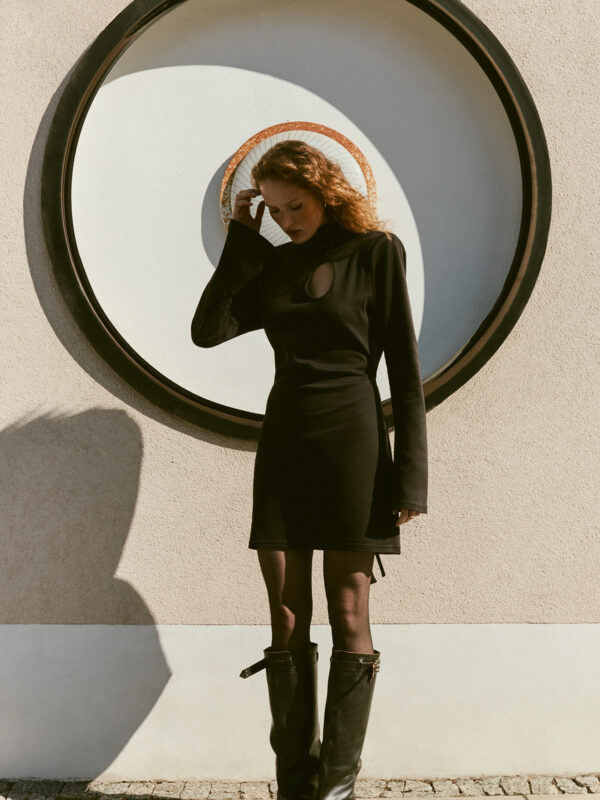 Sukienka Ellipse 3in1 to nasza odpowiedź na klasyczną małą czarną, w wersji codziennej i nowoczesnej. Łączy minimalistyczny krój z wyjątkowymi detalami, dekoltem w kształcie łezki i rozpinaną stójką, które nadają jej unikalny charakter. Dzięki wiązaniu z tyłu możesz perfekcyjnie dopasować ją do swojej sylwetki –podkreślić talię, zawiązać luźniej dla efektu oversize lub przewiązać z przodu, tworząc oryginalny akcent. Model został wyposażony w odpinane poduszki w ramionach, które pozwalają dowolnie modelować proporcje sylwetki. Możesz nosić sukienkę z poduszkami, by wyeksponować linię ramion lub bez, stawiając na bardziej swobodny look. Możesz również zestawić ją ze spodniami. To wszechstronna baza do codziennych i eleganckich stylizacji.