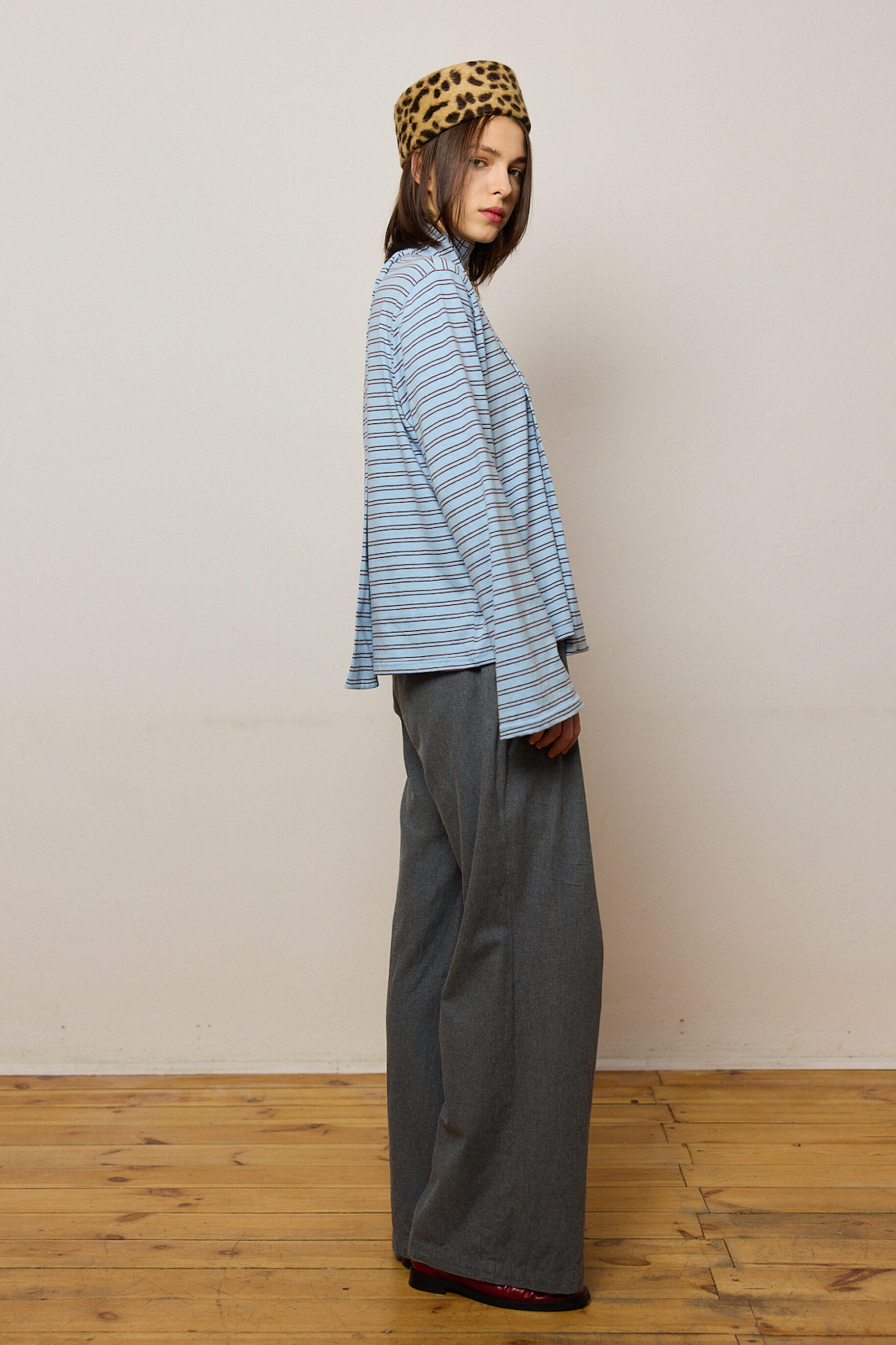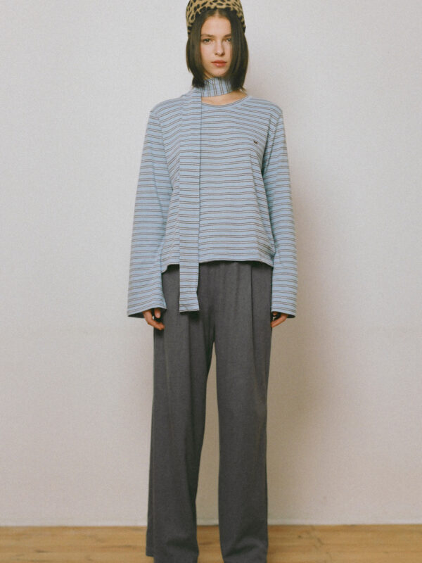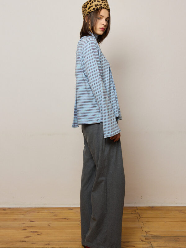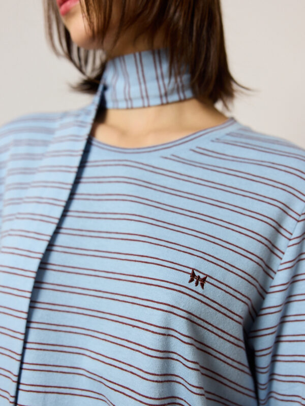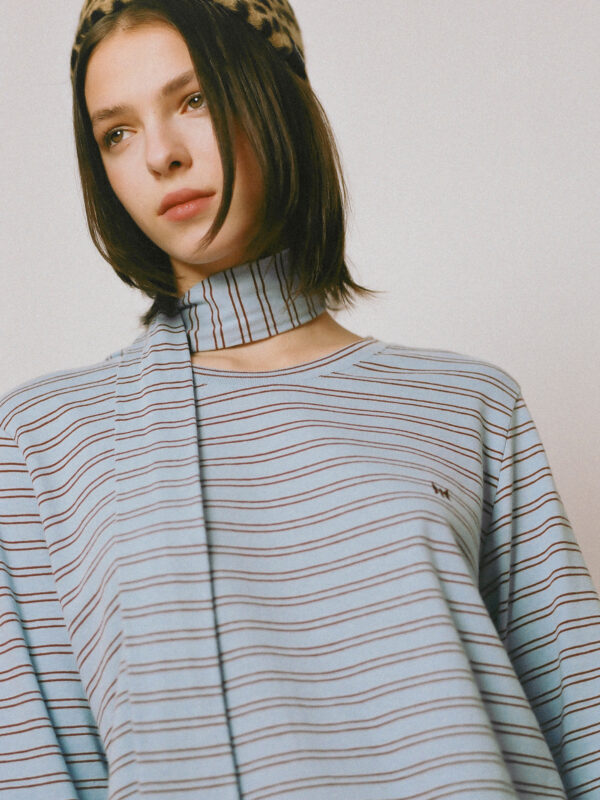 Longsleeve w niebiesko-bordowe paski to wyjątkowy element codziennej garderoby. Delikatnie rozszerzane rękawy nadają mu lekkości i miękkiego ruchu, a subtelny wzór w paski wprowadza odrobinę charakteru, pozostając jednocześnie niezwykle uniwersalnym.