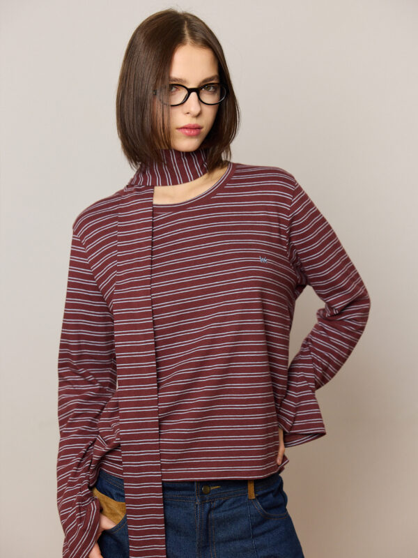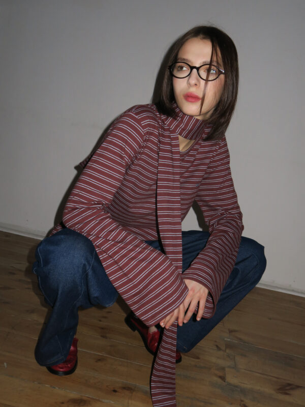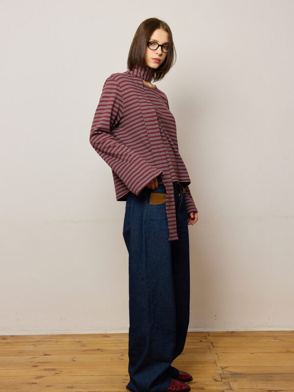Longsleeve w niebiesko-bordowe paski to wyjątkowy element codziennej garderoby. Delikatnie rozszerzane rękawy nadają mu lekkości i miękkiego ruchu, a subtelny wzór w paski wprowadza odrobinę charakteru, pozostając jednocześnie niezwykle uniwersalnym.