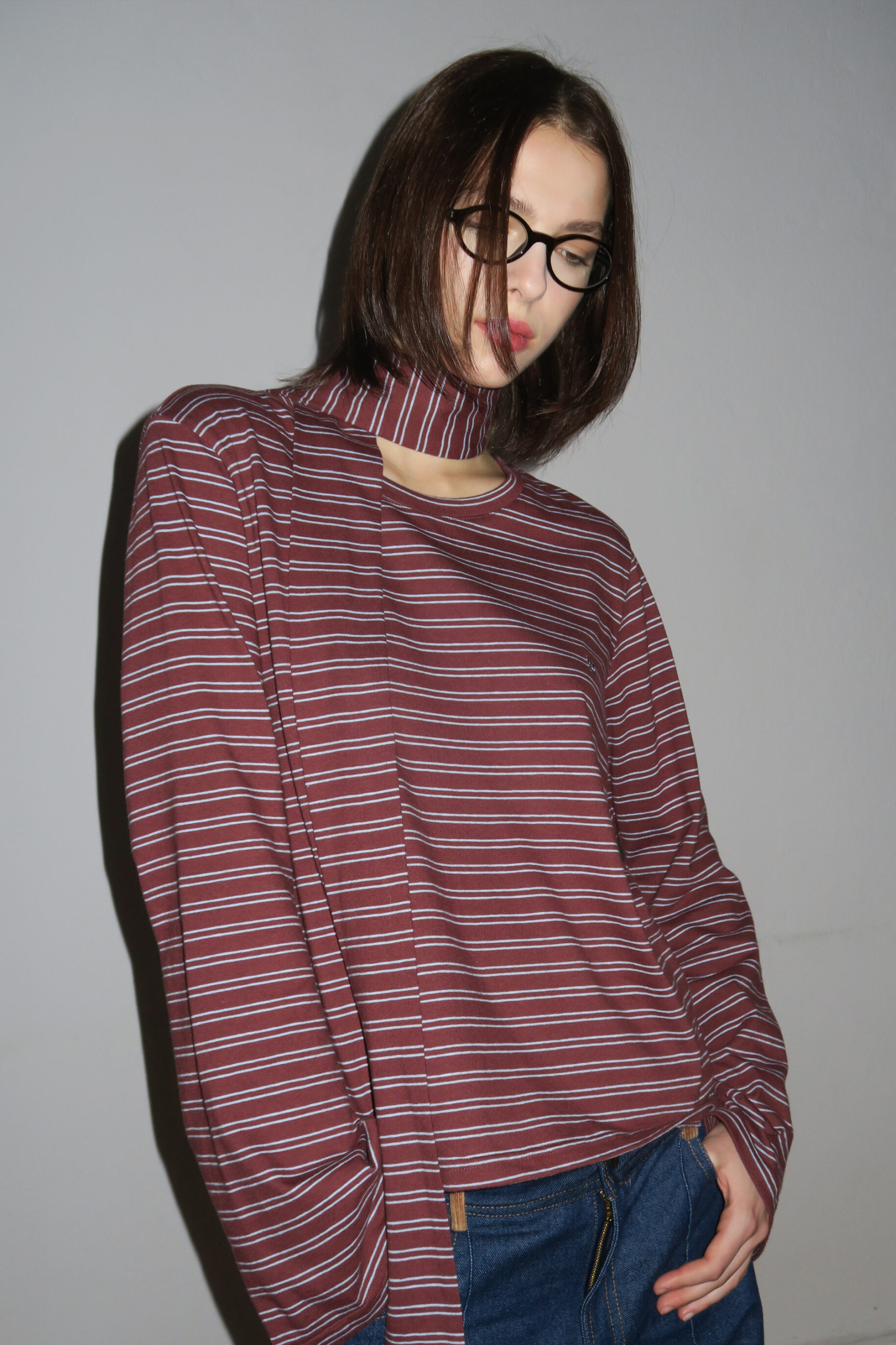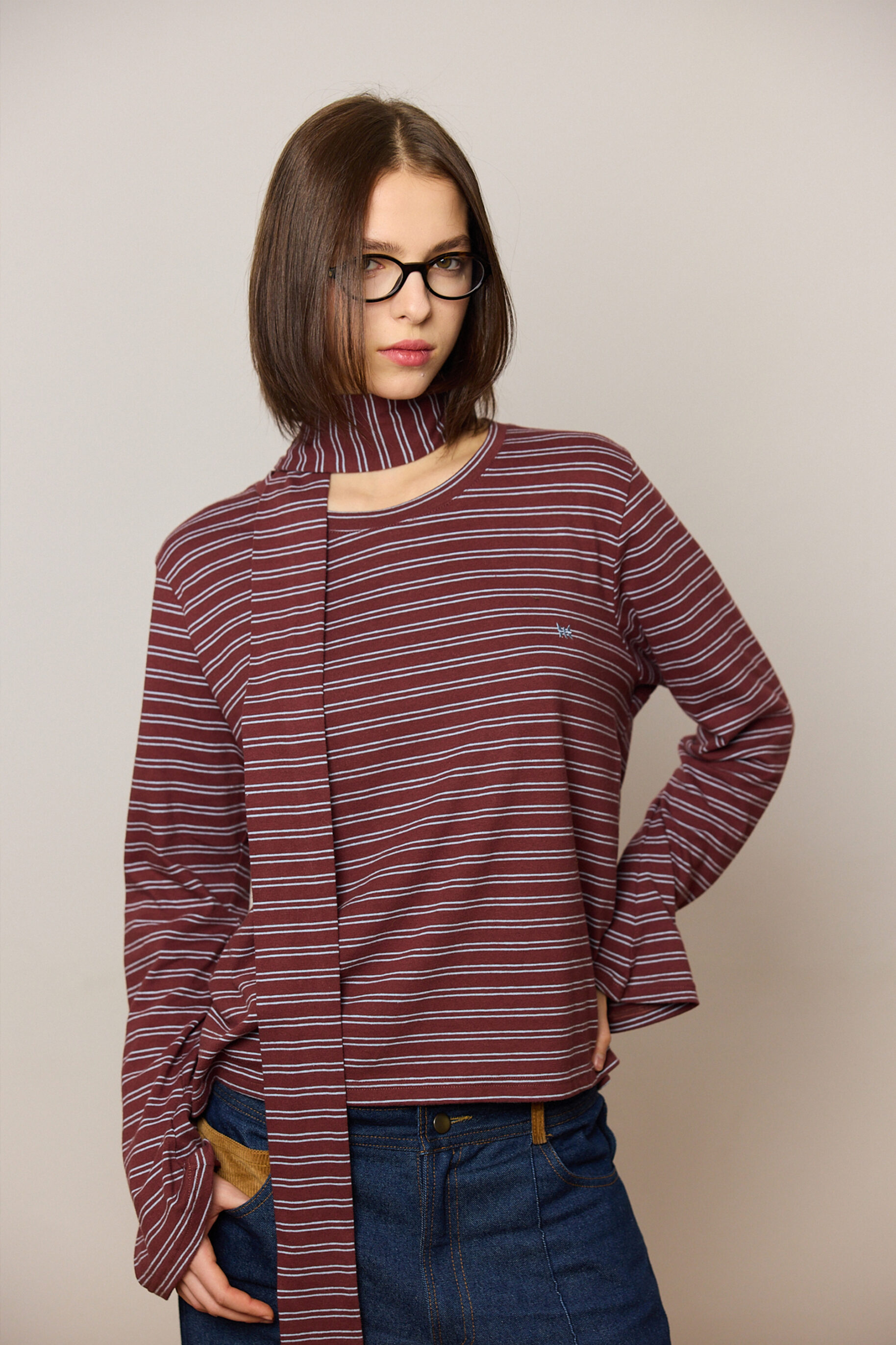 - Longsleeve w bordowym kolorze w niebieskie paski