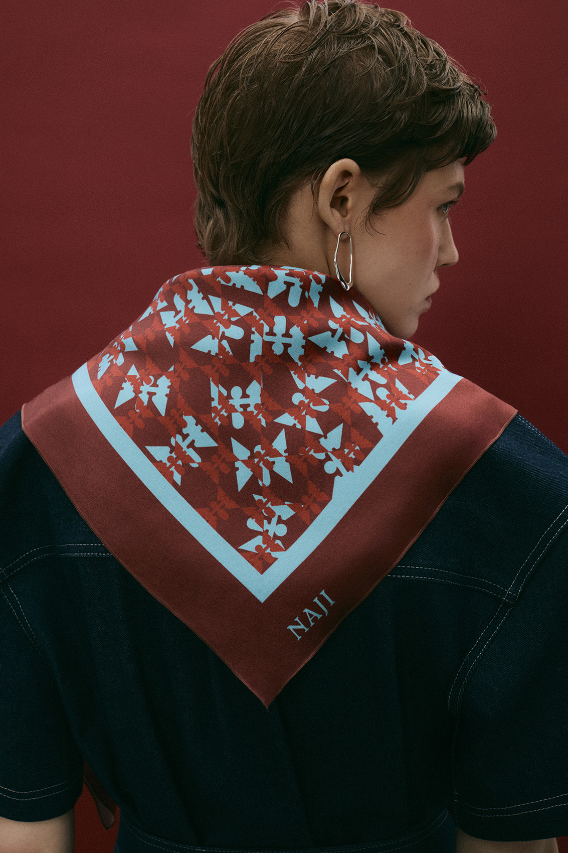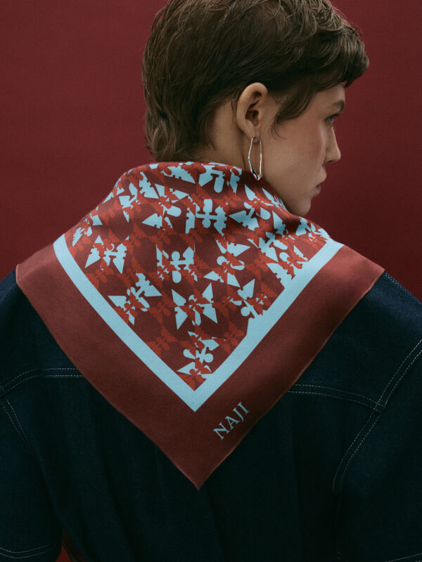 Apaszka 90 × 90 cm – klasyczny wymiar zapewniający wiele możliwości noszenia.