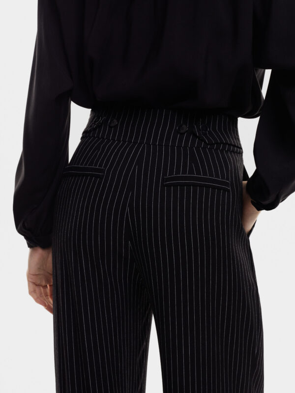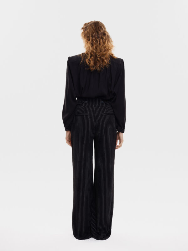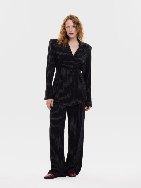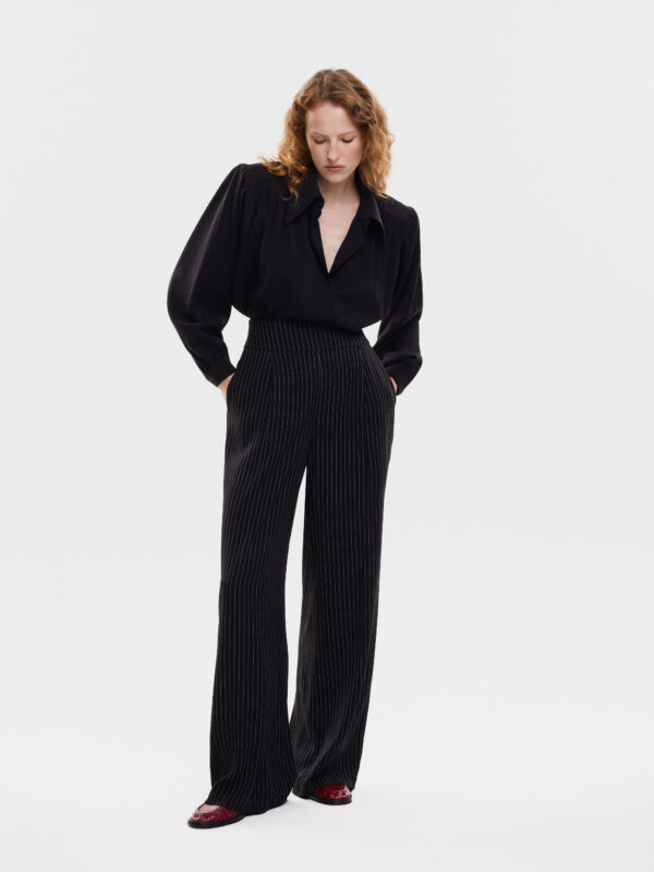 he Suit trousers are a timeless tailored piece that combines classic elegance with comfort. The high waist and concealed zipper visually elongate the legs, while the wide waistband with button adjustment ensures a perfect fit, accentuating the waist and refining the silhouette. They pair beautifully with the Suit Shirt,creating an elegant tailored total look for any occasion. Versatile and universal, wear them formally with a shirt or in a more relaxed style with sneakers. A true classic that also pairs perfectly with our Jasmine and Noir Shirts..