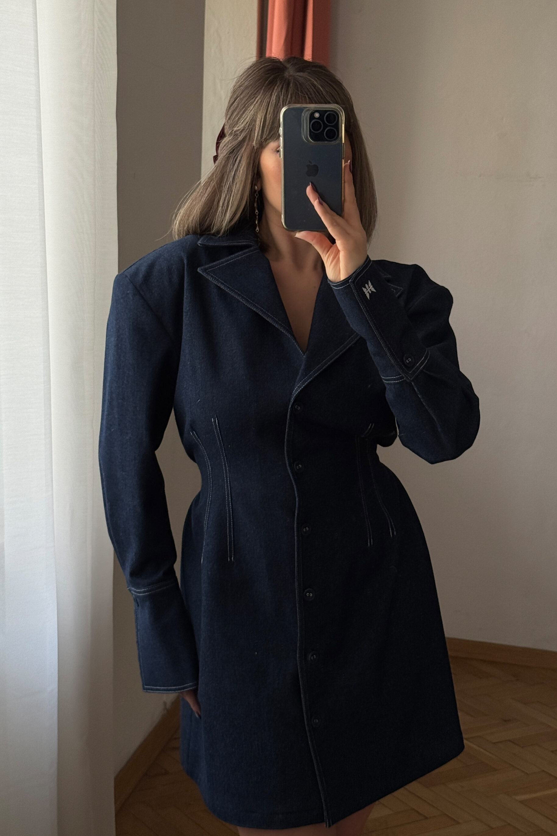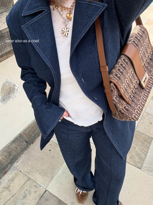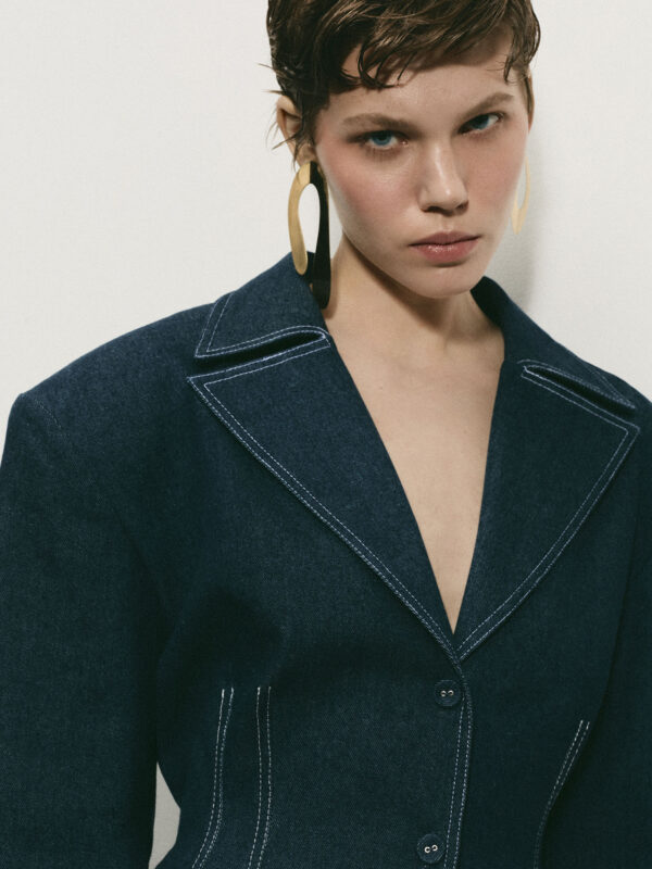 - Sukienka marynarkowa z ciemnego włoskiego denimu