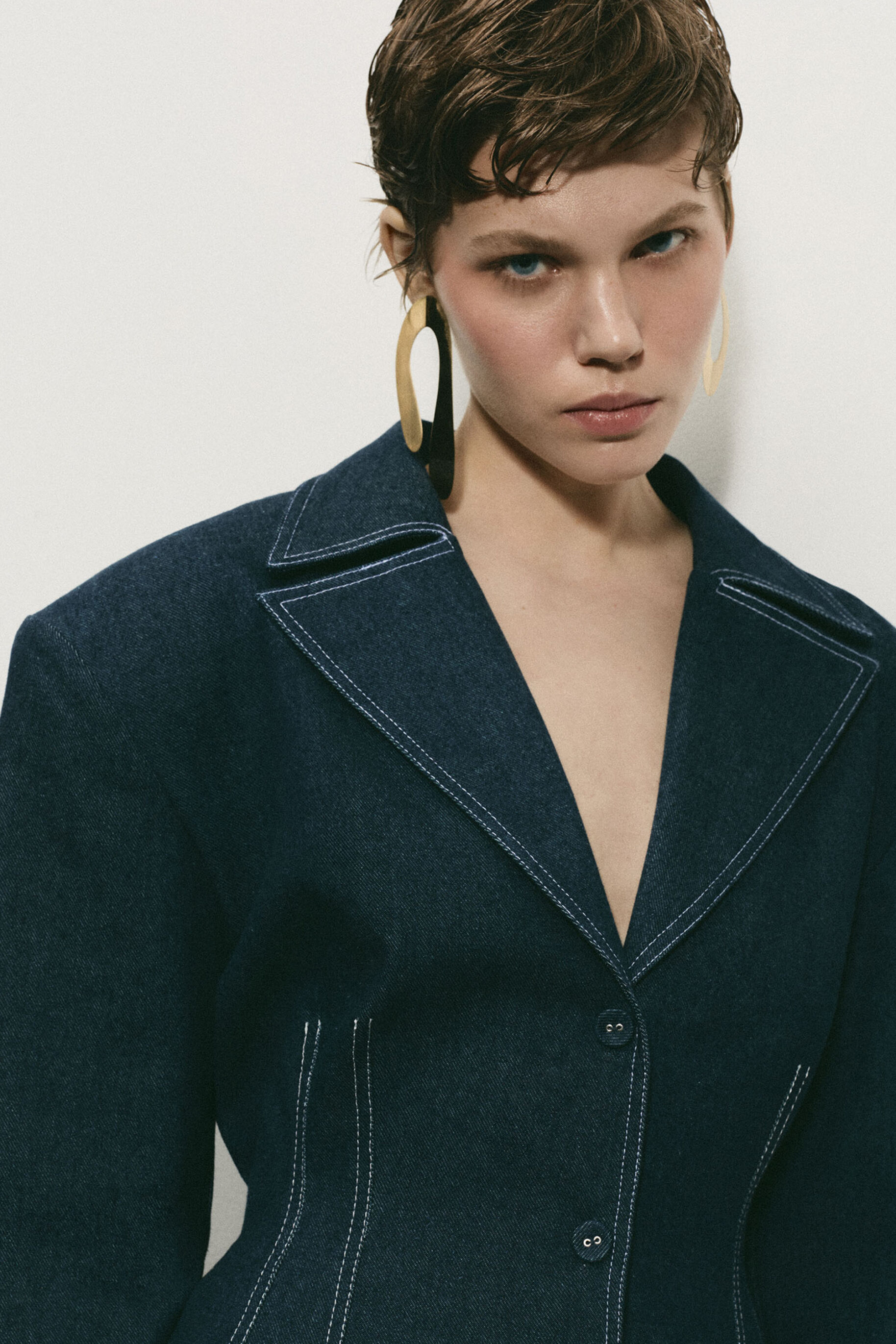 Sukienka Denim Suit to nowoczesna interpretacja klasycznego kroju marynarki, wyróżniająca się dopracowanymi detalami takimi jak zaszewki w talii, efektowny kołnierz oraz wydłużone mankiety. Model został wyposażony w odpinane poduszki w ramionach, które pozwalają na dowolne modelowanie sylwetki. Noś ją z poduszkami dla podkreślenia lini ramion lub bez, stawiając na bardziej casualowy look. Regulacja w talii, ukryta w formie wiązania na plecach, umożliwia perfekcyjne dopasowanie do figury, nadając całości kobiecy, wyrazisty kształt. Sukienkę można nosić również rozpiętą do luźniejszych stylizacji.