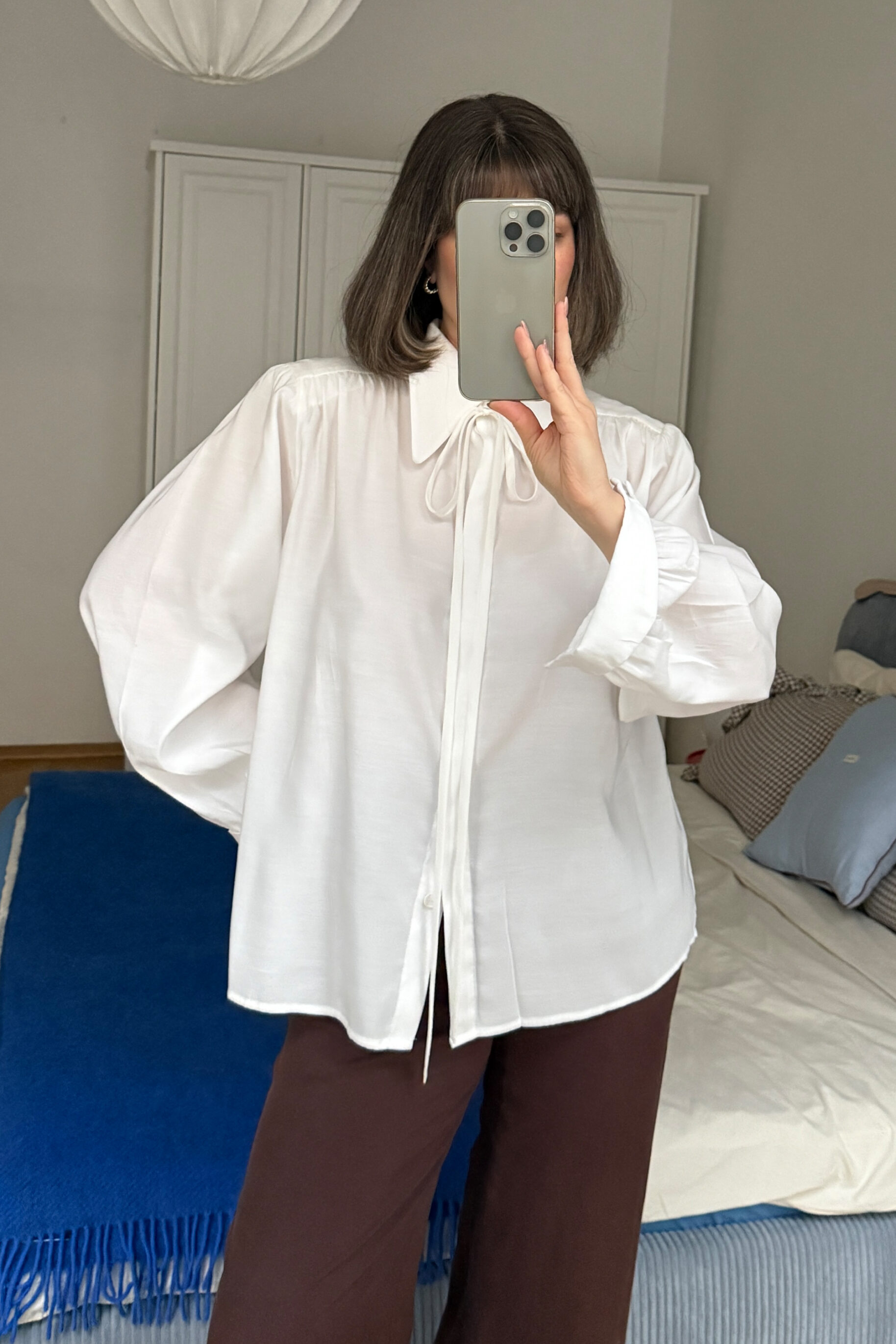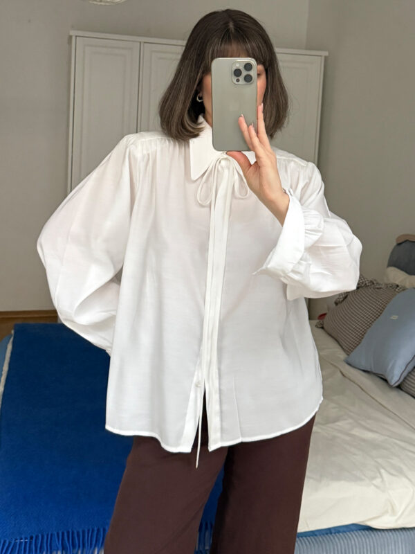 - Biała koszula o lejącej, niesamowicie przyjemnej tkaninie