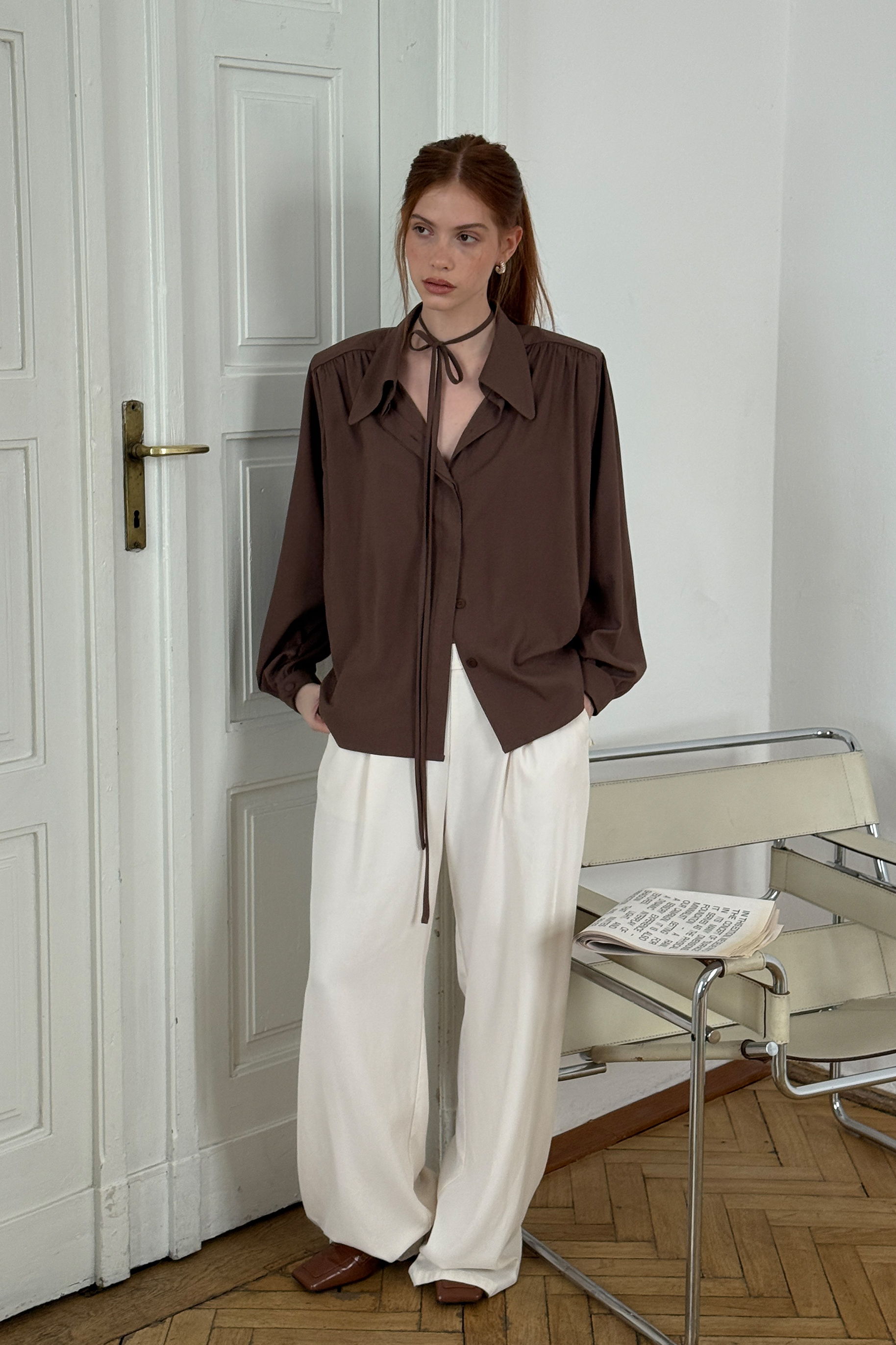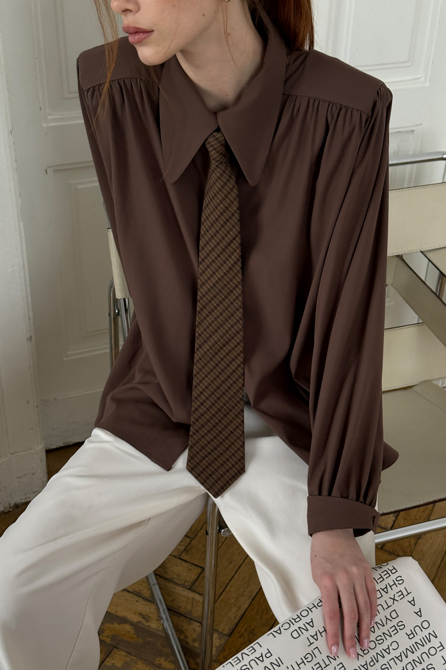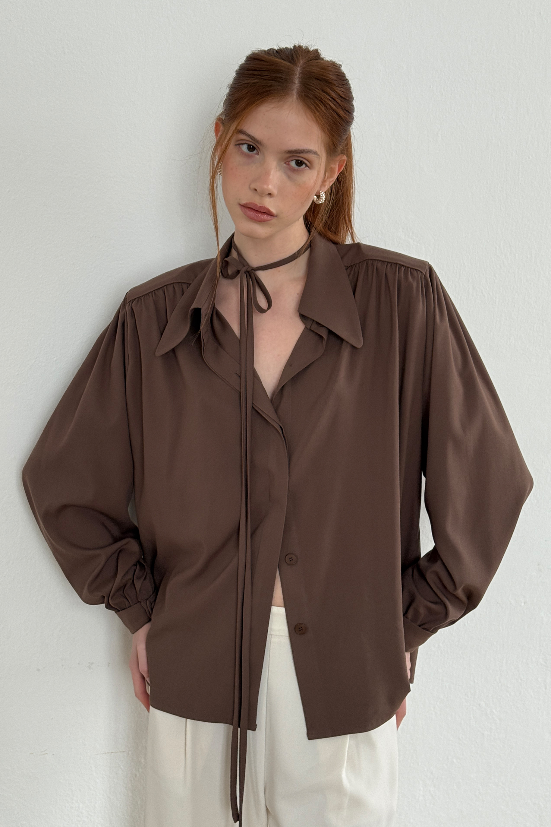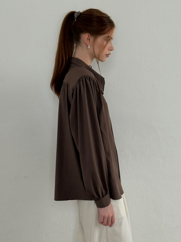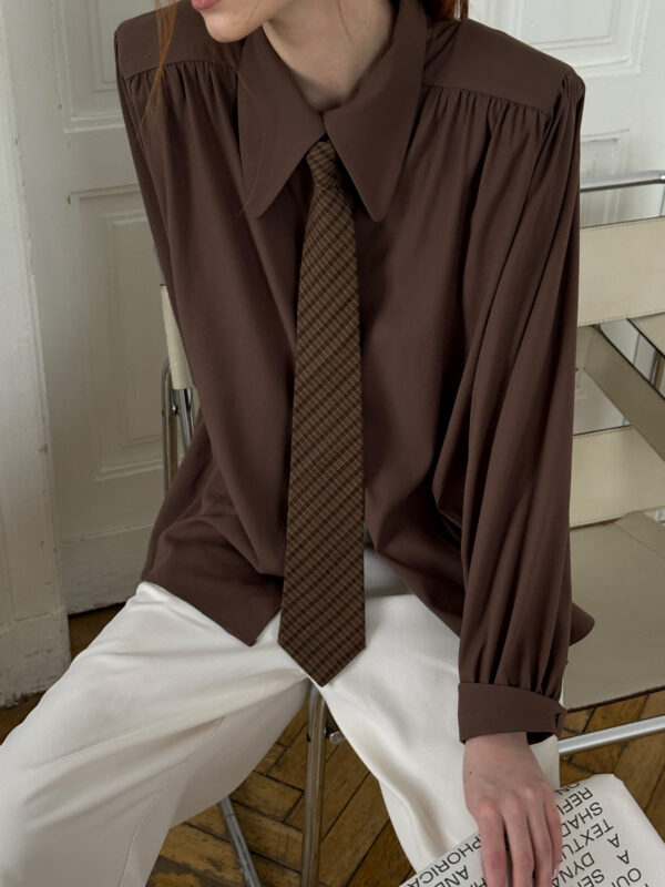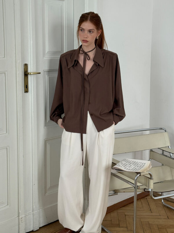 - Brązowa koszula o lejącej, niesamowicie przyjemnej tkaninie