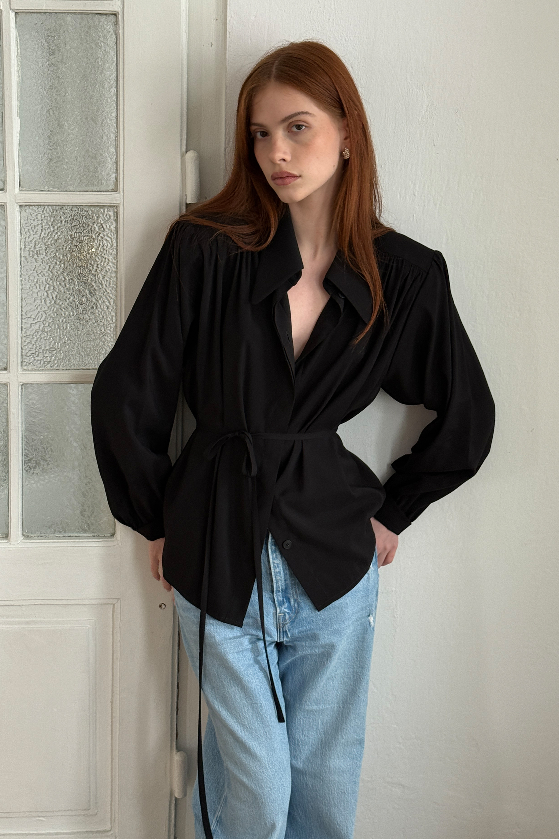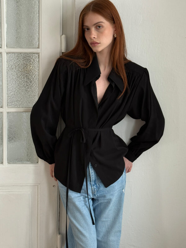 Koszula Noir swoją inspirację znalazła wśród modeli koszul z lat 60-tych. Lejąca tkanina w ponadczasowym czarnym kolorze oraz efektowne marszczenia na przodzie i tyle nadają koszuli szlachetnego charakteru. Polecamy nosić ją w zestawie ze spodniami lub spódnicą włożoną do środka. Wyciągnięta na wierzch pozwoli stworzyć luźny, nonszalancki look. Idealnie komponuje się ze spodniami Suit oraz jeansami Denim.