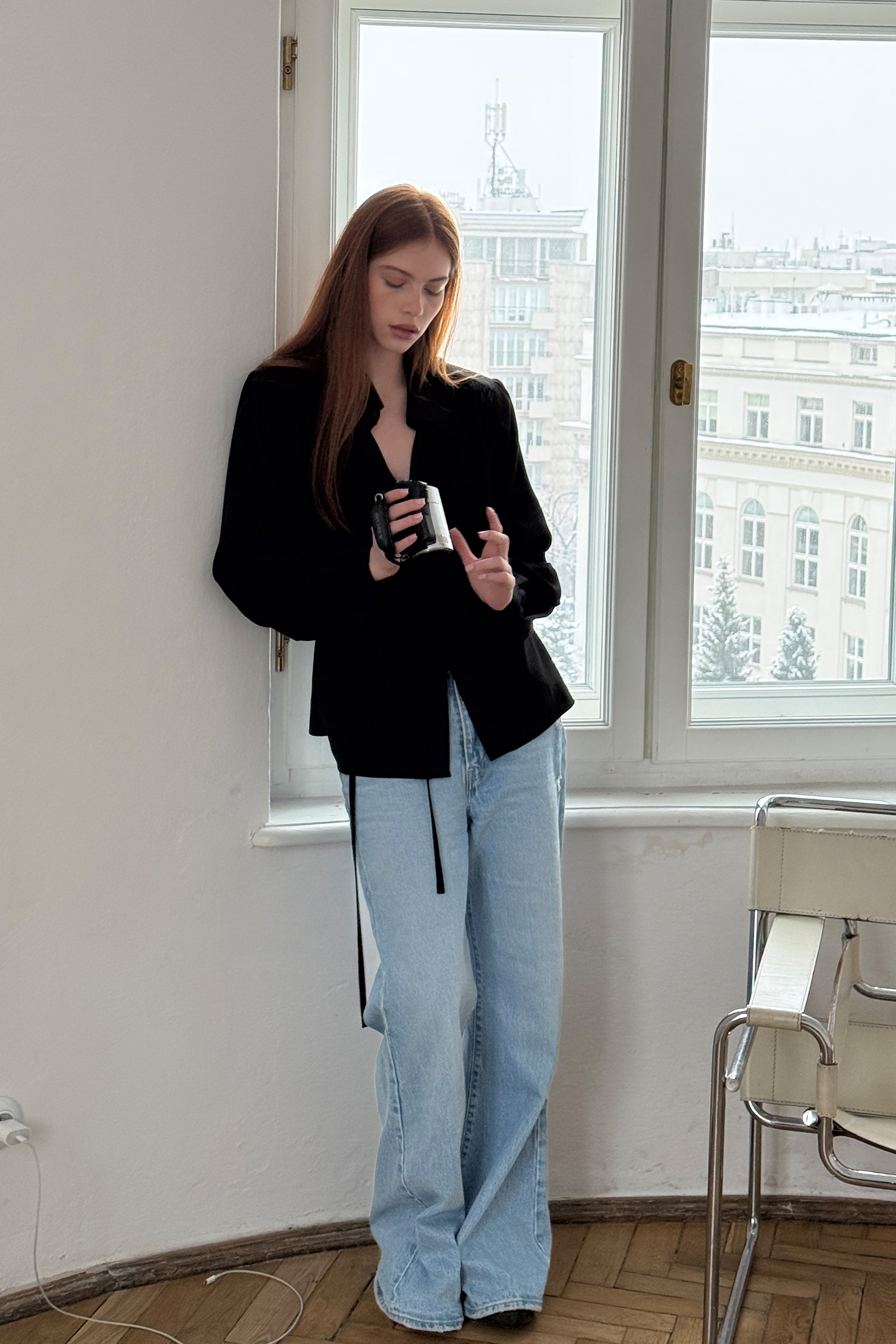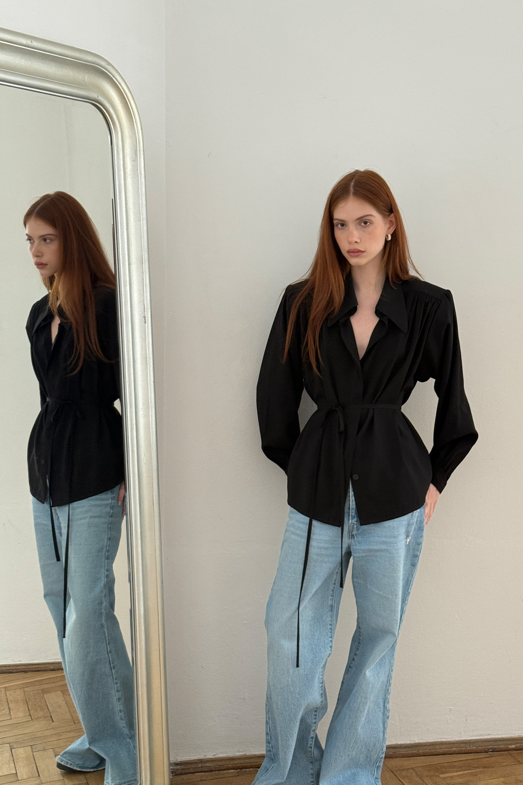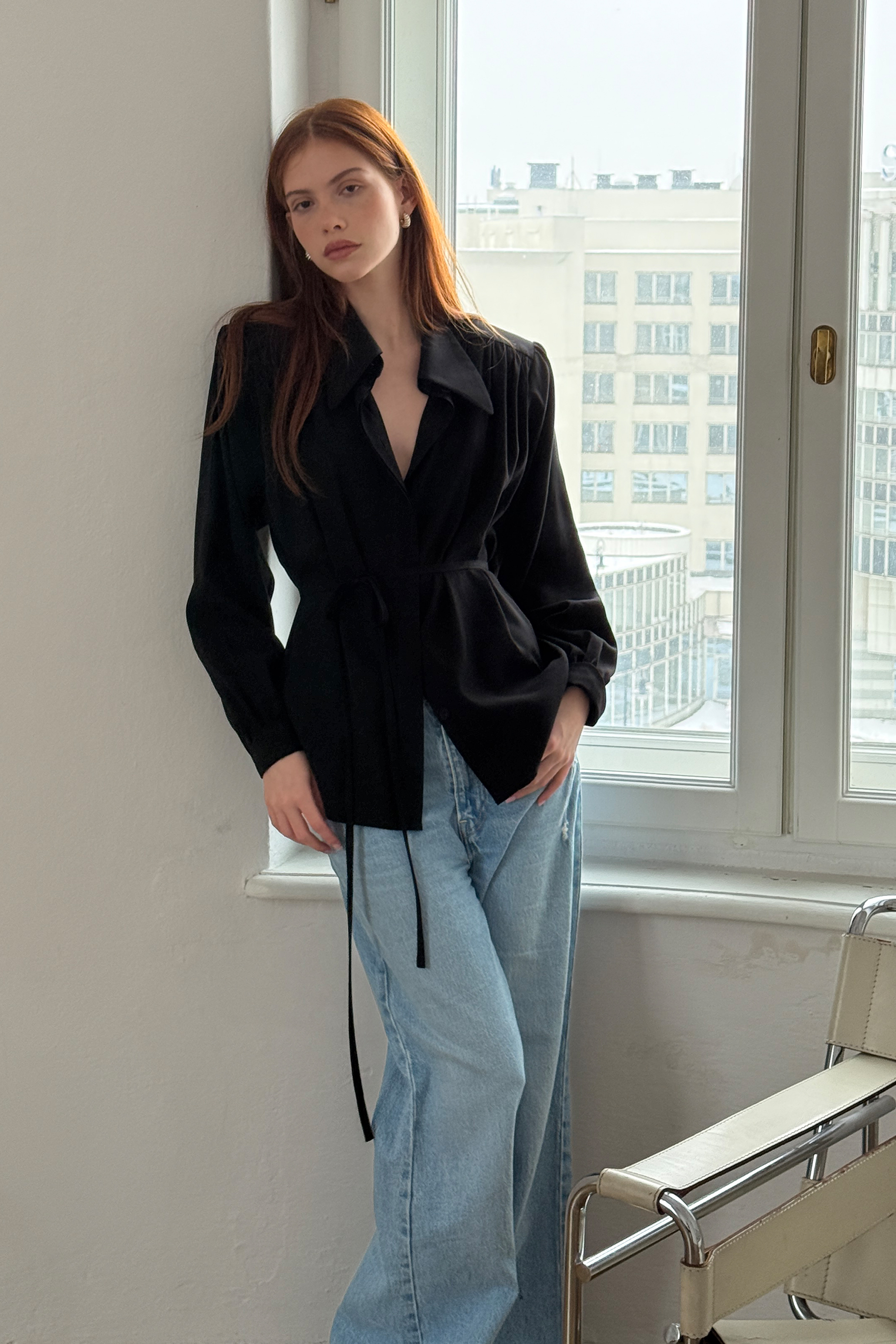 - Czarna koszula o lejącej, niesamowicie przyjemnej tkaninie