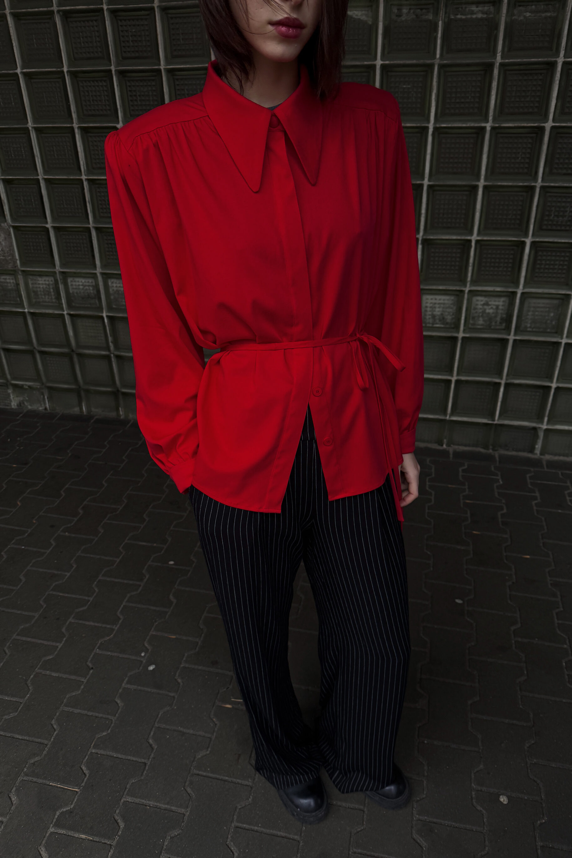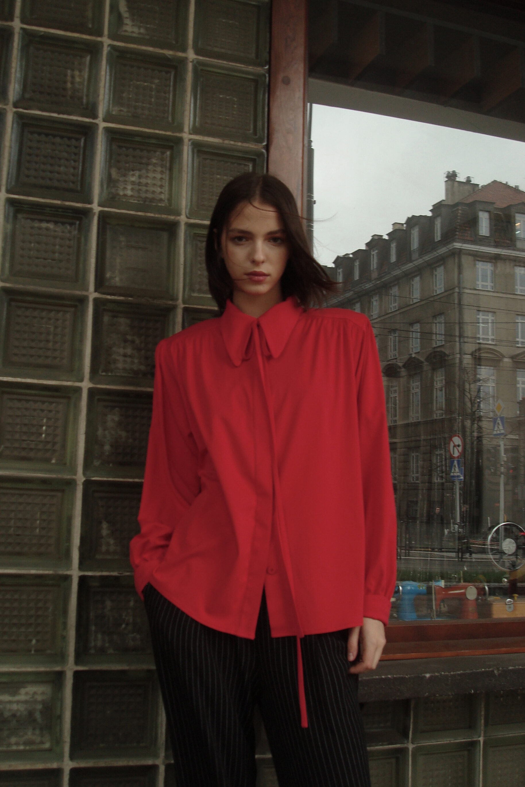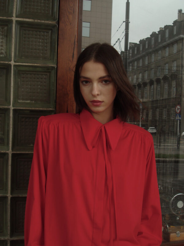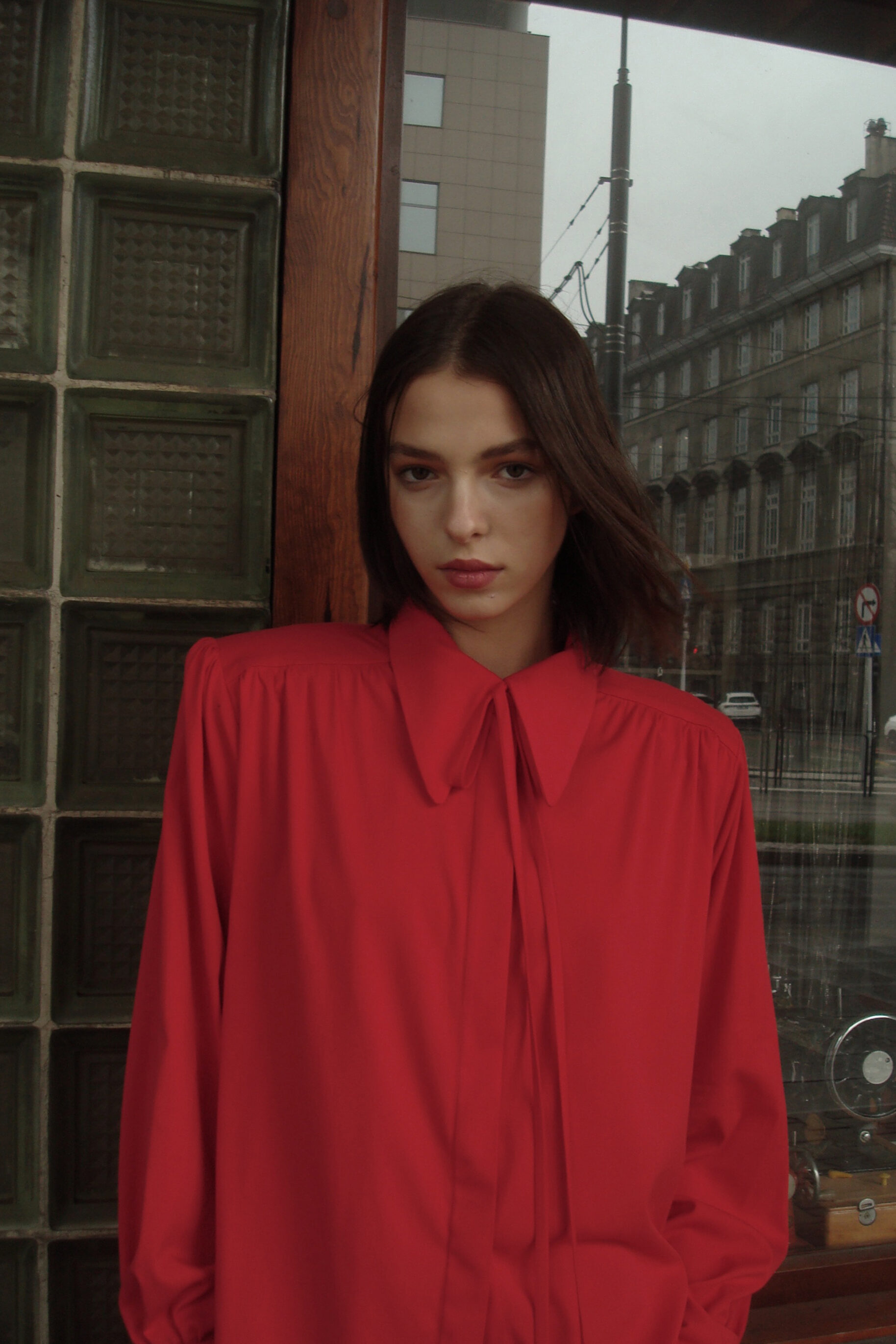 - Soczyście czerwona koszula o lejącej, przyjemnej tkaninie