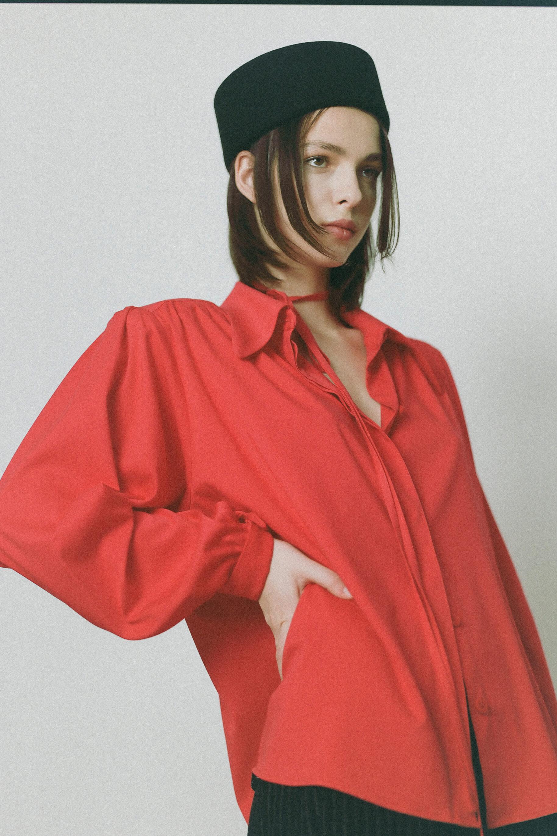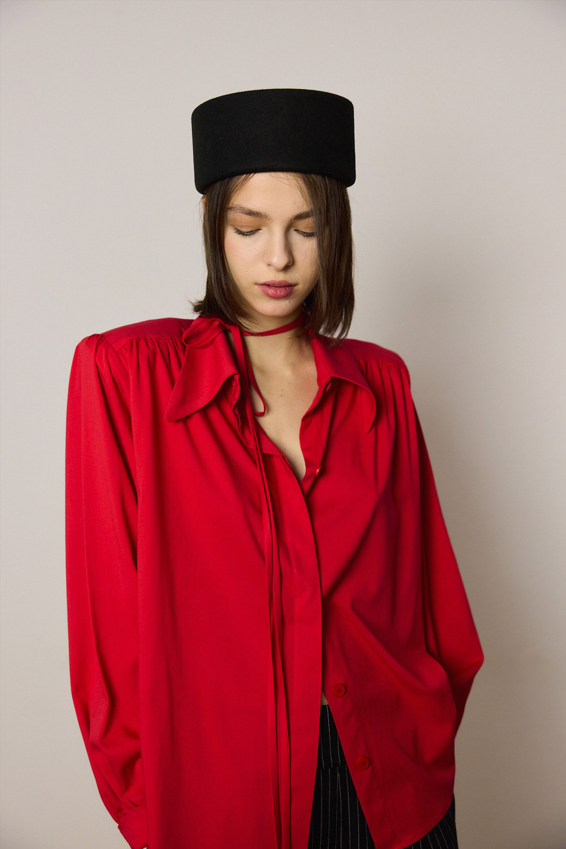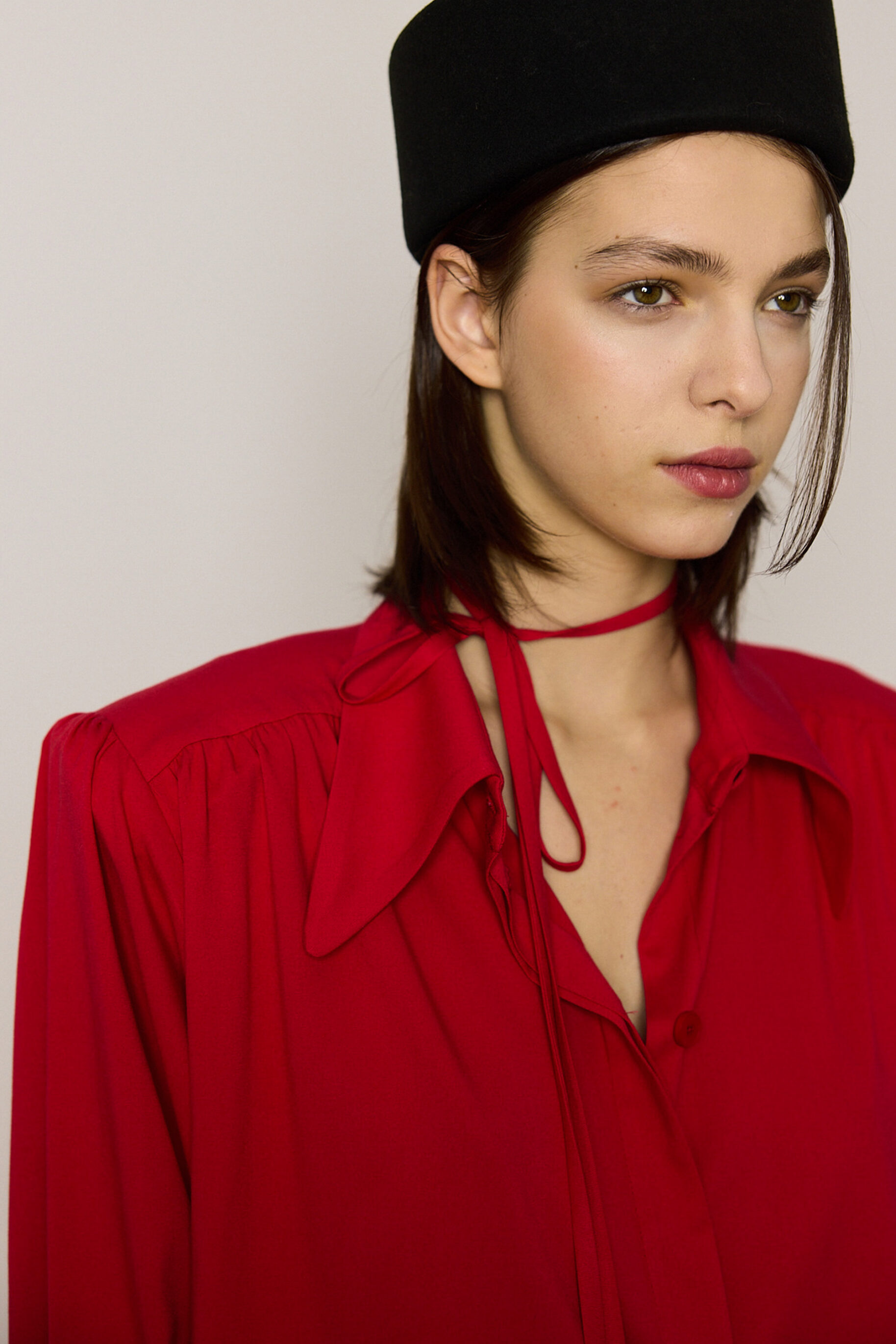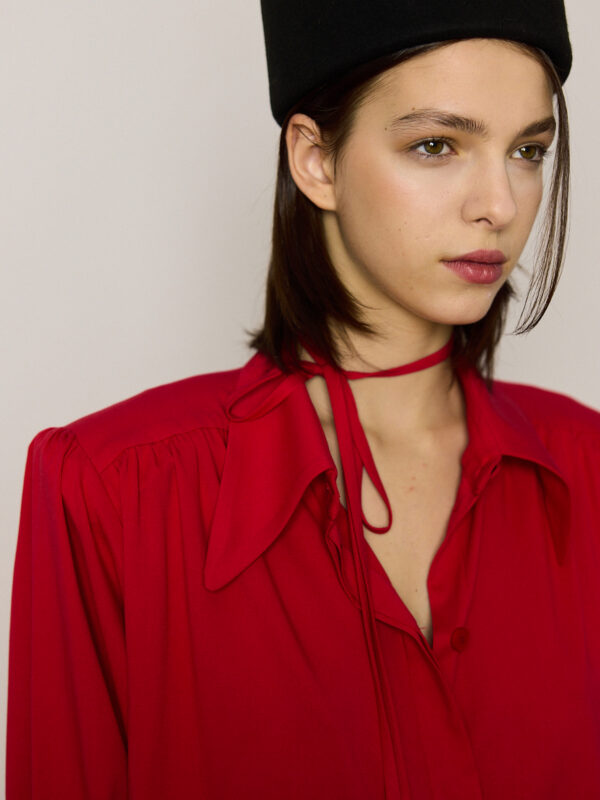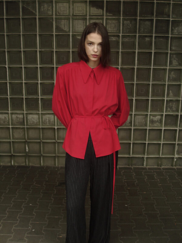 - Soczyście czerwona koszula o lejącej, przyjemnej tkaninie