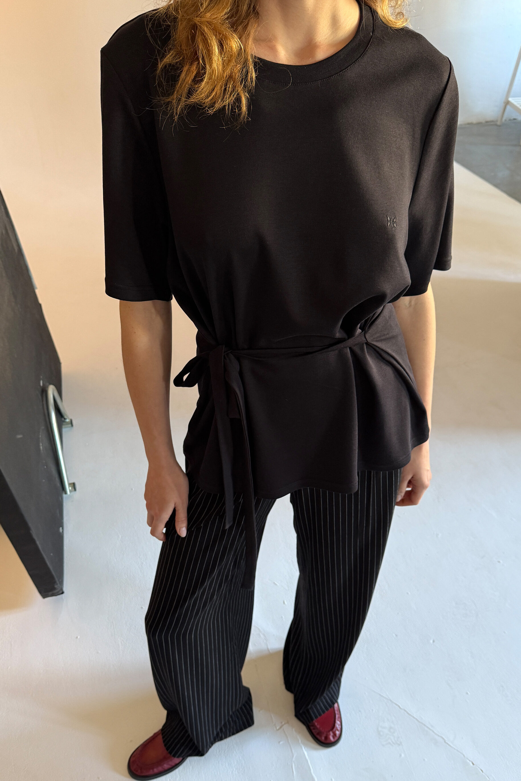 T-Shirt 3in1 Bamboo Cotton to nasza odpowiedź na klasyczny T-shirt. Łączy minimalistyczną formę z wyjątkowymi detalami, które nadają mu unikalny charakter. Dzięki wiązaniu z tyłu możesz perfekcyjnie dopasować go do swojej sylwetki – podkreślić talię, zawiązać luźniej dla efektu oversize lub przewiązać z przodu, tworząc oryginalny akcent. Model został wyposażony w odpinane poduszki w ramionach, które pozwalają na dowolne modelowanie sylwetki. Noś go z poduszkami dla podkreślenia lini ramion lub bez, stawiając na bardziej swobodny look. To uniwersalna baza do codziennych i eleganckich stylizacji. Stwórz idealny zestaw w połączeniu ze spodniami Suit lub jeansami Denim.